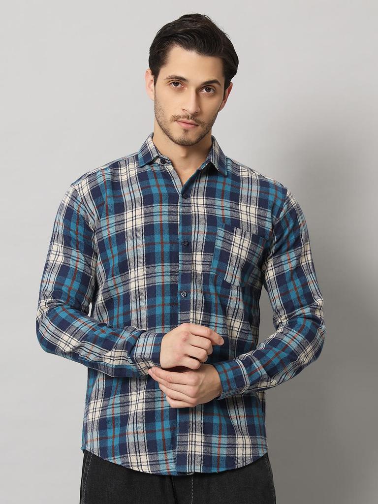 Bigreams Men's Yarn-Dyed 100% Cotton Slim Fit Herringbone Checkered Flannel Plaid Winter Shirt For Full Sleeve Shirt
