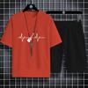 Summer Fashion Outdoor Sports Style 2d Cartoon Bicycle Print Men'S Crew Neck T-Shirt Trouser Set Comfortable Quick Drying