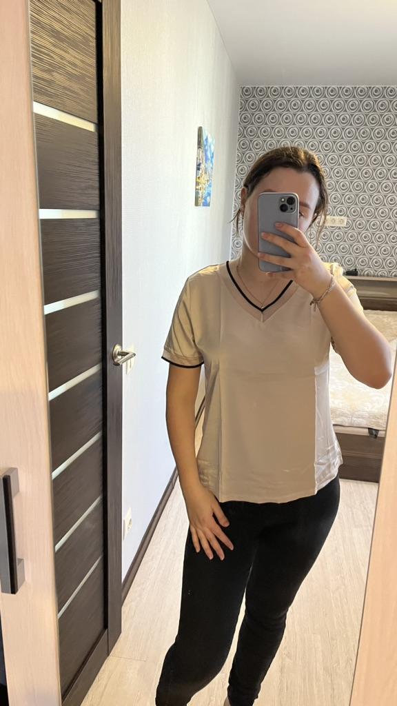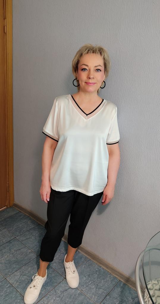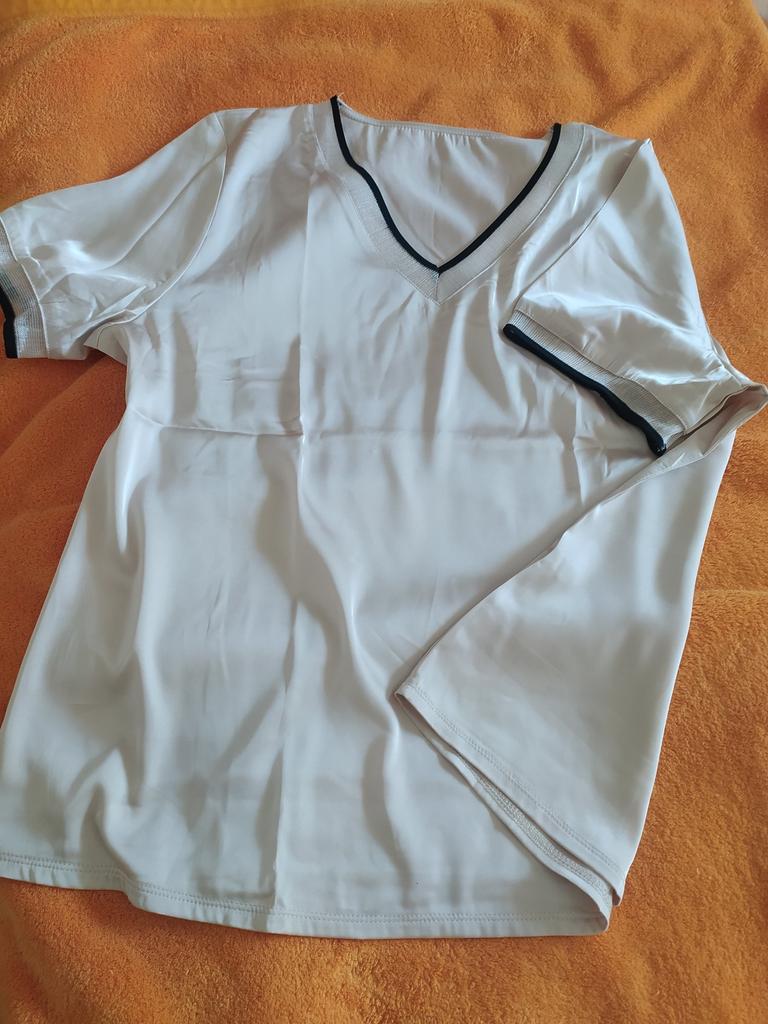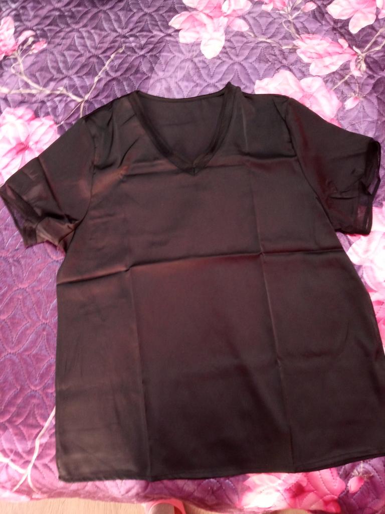 The T-shirt fit my size 52. There is no tag on the product with the fabric composition, nothing at all except the size. The T-shirt is satin, light.