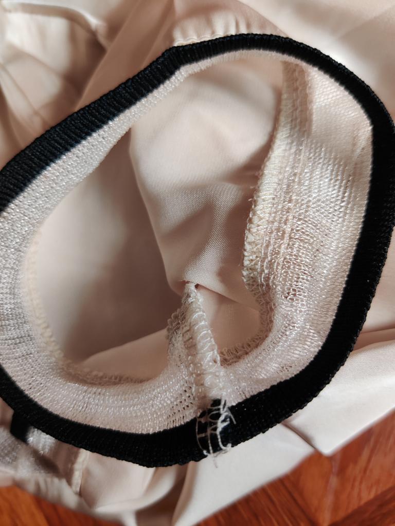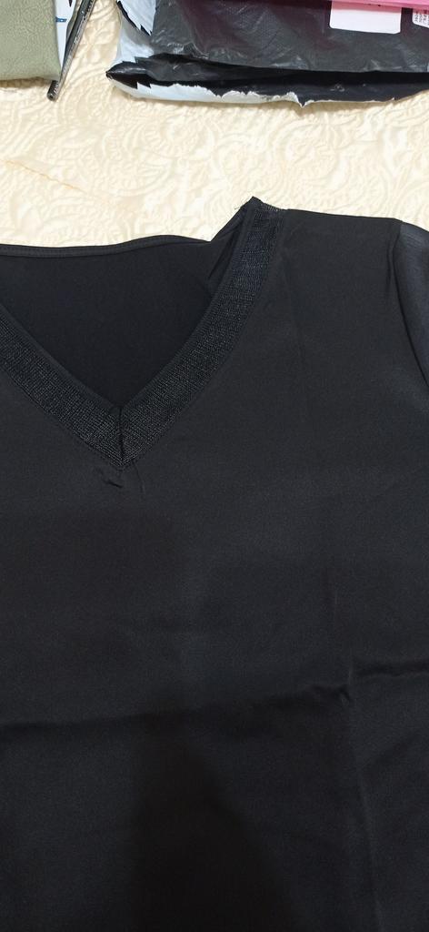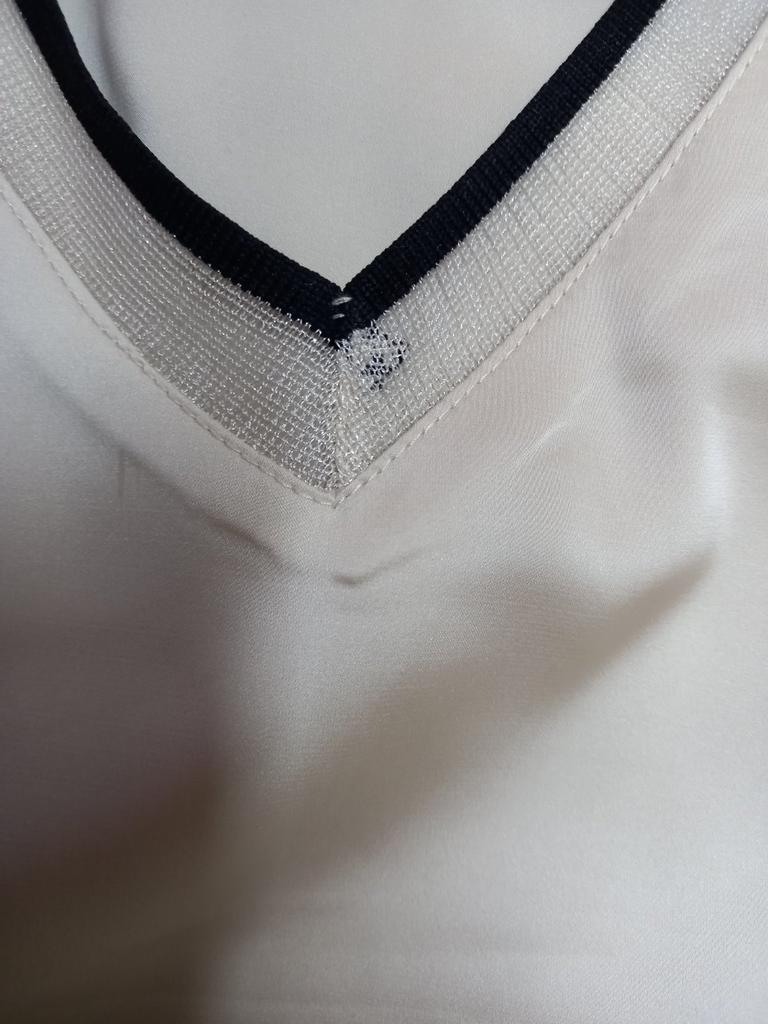 46 in the shoulders and chest close together. The cutout on the toe is not quite neatly and evenly processed. There are light threads peeking out on the black, which can be corrected. And the blouse looks so gentle.