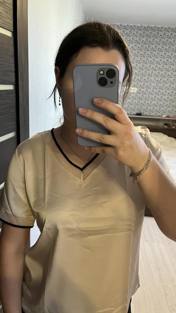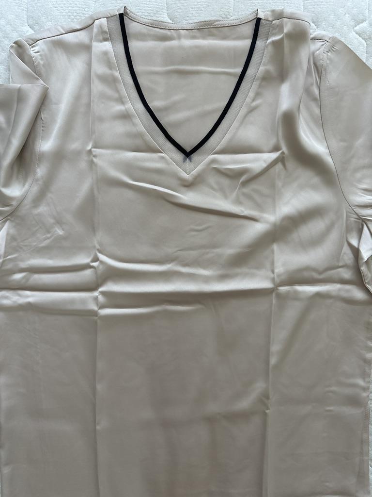 Summer Women's T-shirt Silk Satin Silk V-neck Mulberry Silk Short Loose Top Short-sleeved T-shirt