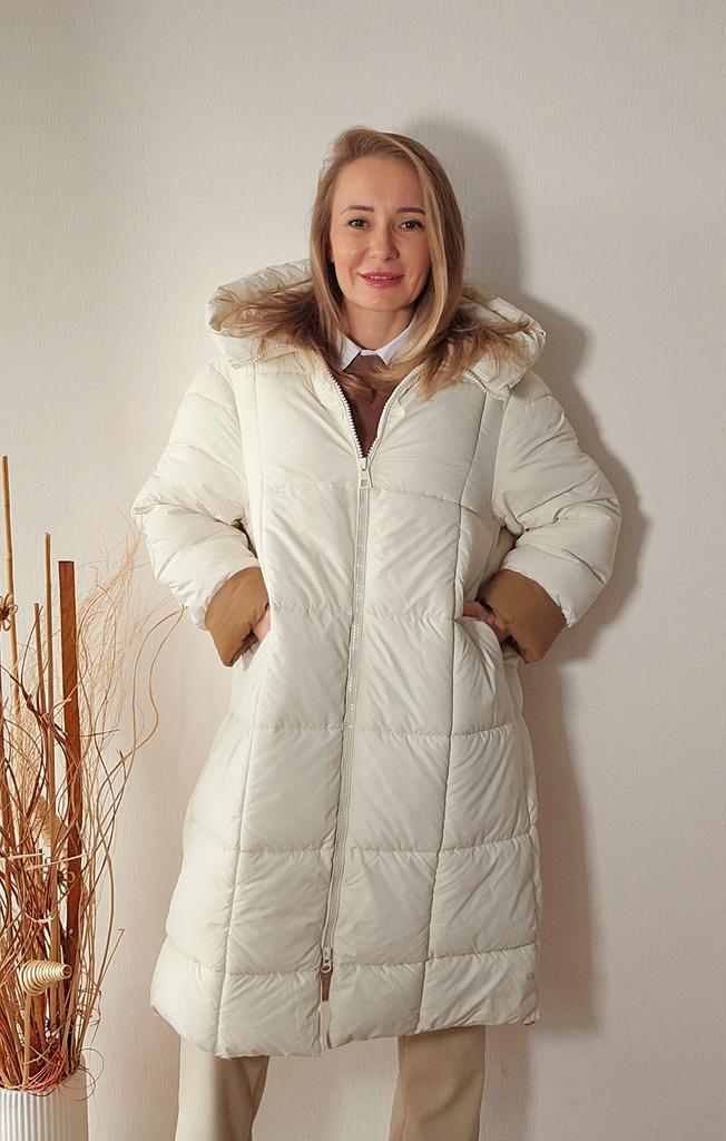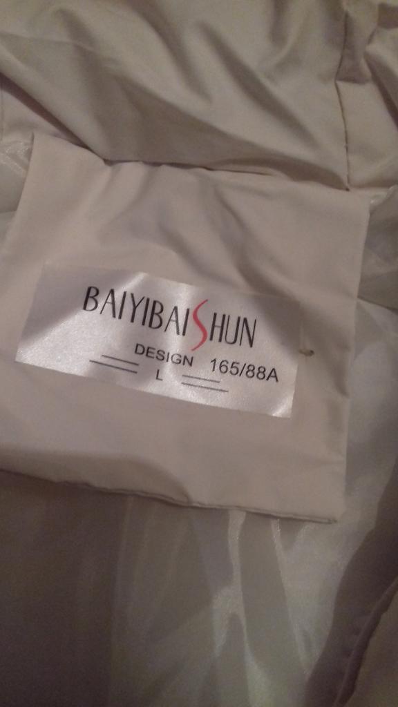 Great coat, light. Color not white . I recommend to buy. Thank you.