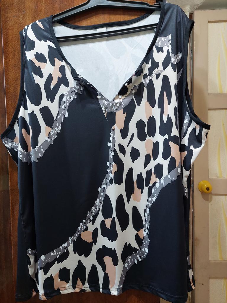 Women Tanks Sexy V Neck Sleeveless Summer Tops Vest 3D Print Black Shiny Leopard Print Tops