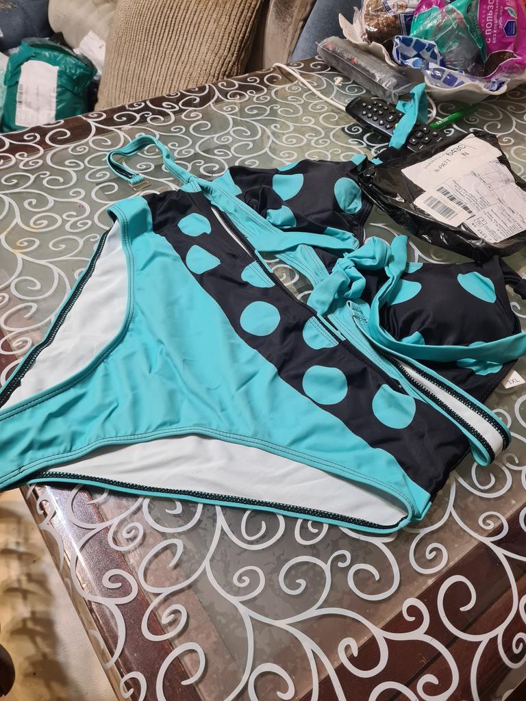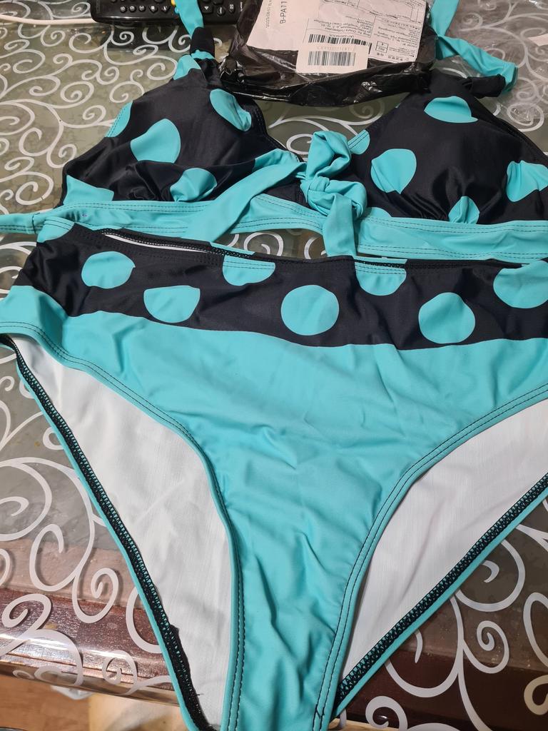 Women's Halter Bikini Tankini Swimsuit Blue Dots and White Squares Swimsuit