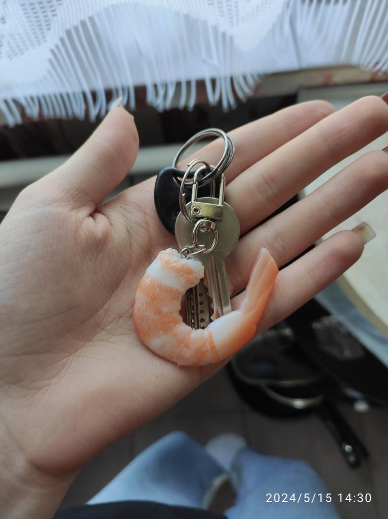 Very cool keychain ππ€πΌ The shrimp π€ is like the real thing, even a little flexible) If you put it with other boiled shrimp, it will be difficult to distinguish it from the outside π