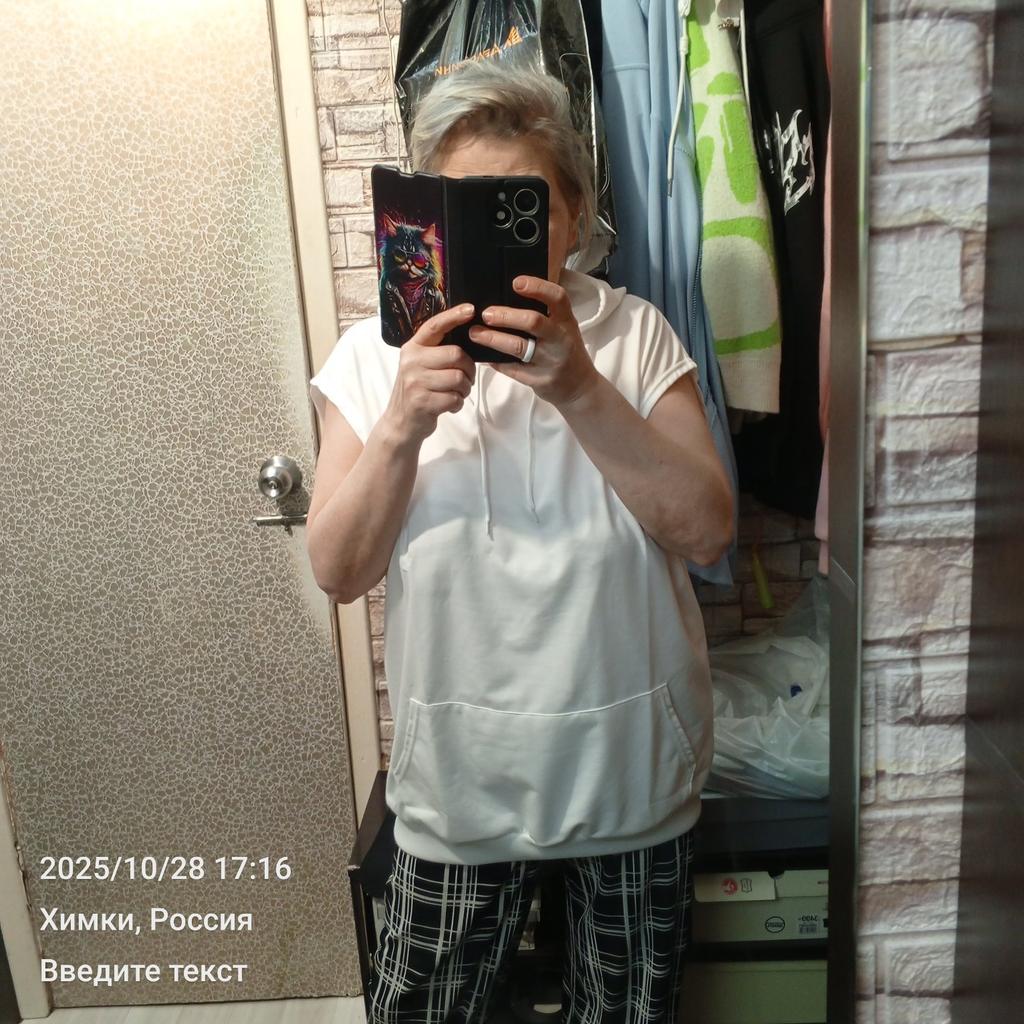 The item is well sewn. Cute. Disappointed that the sleeveless top turned out to be absolutely see-through. I don't remember if larger sizes were available, but the one I got turned out to be a bit small. My bust circumference is 118, and the width of the garment at the chest is 65. It doesn't cling to a thin t-shirt, of course, but I wanted it to be loose. It will be a gift for someone.. Everything is well and neatly packed. Quite fast delivery.