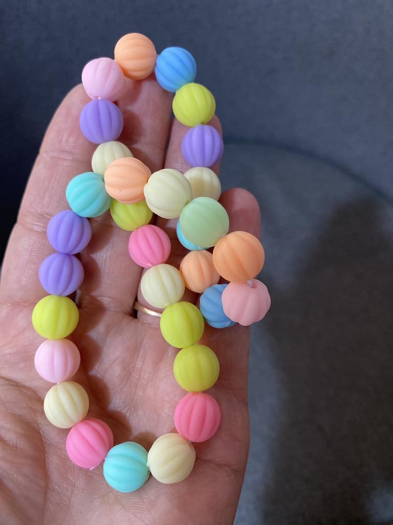 It was indicated that the beads were rubber, but they were acrylic. The colors were beautiful, the quantity was 31 pieces. Shipping was fast, tracked to the post office
