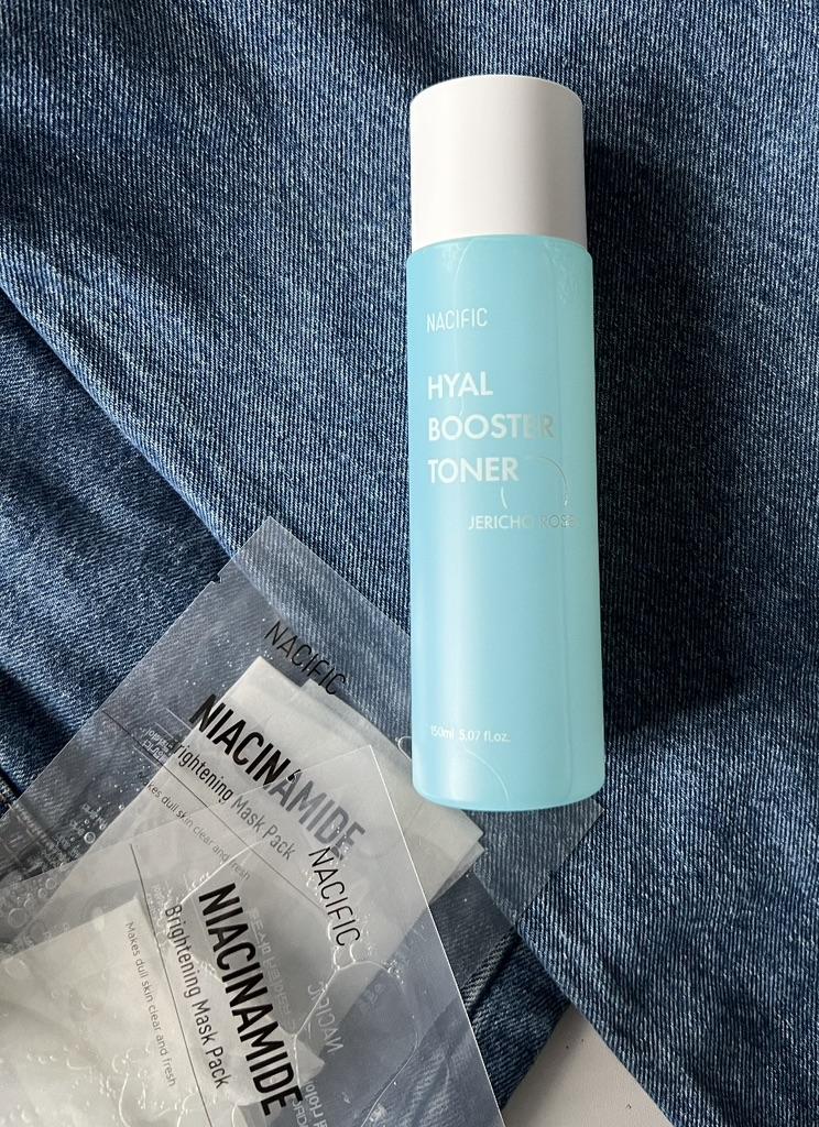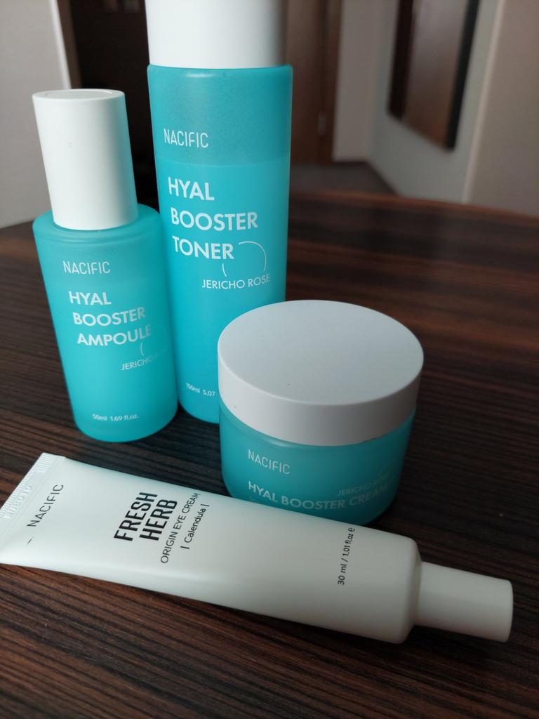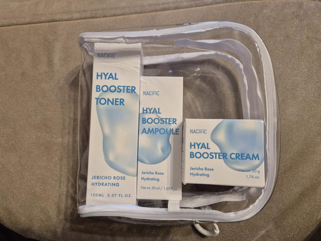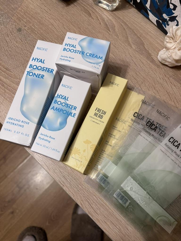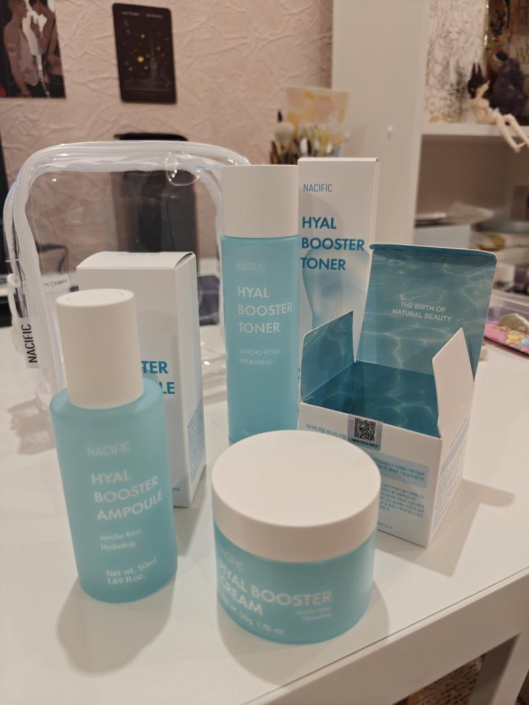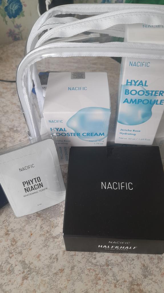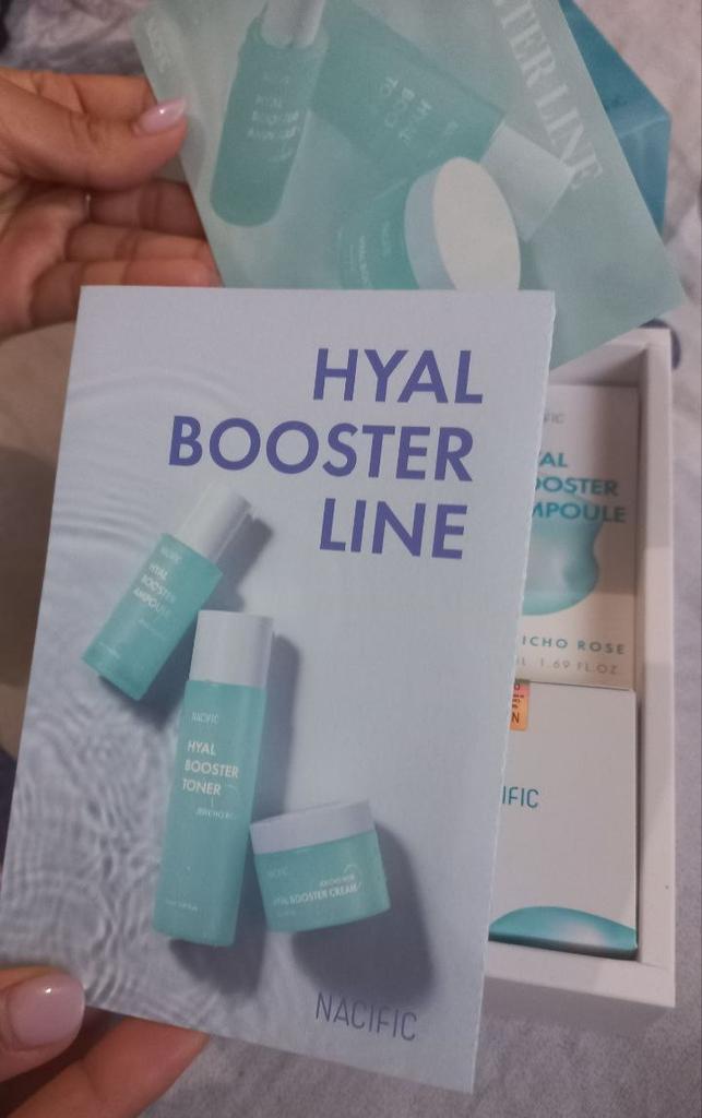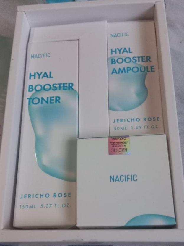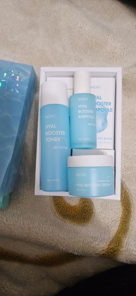Hyal Booster Set (Toner, Ampoule, Cream + Gifts, NACIFIC Moisturizer Glowing Fresh Skin To start with, it's Korean products. Today I'm renewing the comment. It's a great product. High hydration and tightens the face. I have combination skin and this product was suitable for me and I benefited from it. Goodbye to dry and dull skin and hello to radiant and moisturized skin with Hyal Booster Ampoule. Used: Step 1: After washing your face, use toner to soften your skin.. Step 2: Take an appropriate amount of cream and spread it smoothly on the face and neck.. Step 3: Gently pat your face with your hands to allow it to absorb.. Shipping from 1 to 3 weeks The packet is properly protected against breakage.