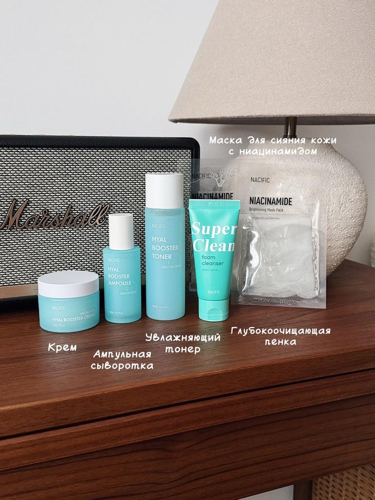 A luxurious set of care cosmetics of the Korean brand NACIFIC 🇰🇷 HYAL BOOSTER 💙 Almost every day, the modern cosmetic industry presents the world with more and more innovative products that can quickly cope with problems that seemed intractable until recently. Facial boosters are one of such products of the new generation, which are confidently winning the hearts of young ladies today ❤️. (Translated from English, booster is "amplifier" or "accelerator".) The set includes: 1. Toner 150 ml. 2. Serum 50 ml 3. Cream 50 ml + as a gift 🎁 the seller included two brightening masks with niacinamide and a foam for washing 50 ml 💧 Branded boxes with holographic protection. Bottles and jars of blue frosted glass with white caps. Everything looks just great. It seems that these are not cosmetics, but fluffy clouds in the spring sky ☺️🌥️💙 The filling did not disappoint either. The aroma of the products is thin, delicate and barely perceptible. The products moisturize the skin well, making it smooth and silky. The skin becomes more elastic, small wrinkles are smoothed out. The effectiveness of the means is ensured by a rich composition. Here we have a whole bunch of goodies for our skin: rose of Jericho extract, aloe extract, shea butter, vitamin C, camellia leaf extract, arginine, hyaluronic acid, bamboo extract. And this is far from the whole list. The brand is super. The tools are really effective. If the information was useful, put it as a favorite ❤️ I received the goods in 17 days by "Nova Poshta" 🚀 The track was tracked completely. The arrival at the point of issue was announced by sms 📲. Packaging: cardboard box with logo. Cosmetics were carefully wrapped in packaging material. Everything arrived intact. Happy shopping and fast deliveries to everyone 🛍️☺️🚀🍁 And remember that every woman is a star, so shine brighter 🌞.
