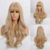 EASIHAIR Long Pink Ombre Wavy Synthetic Wigs with Bangs Natural Wave Hair Wigs for Women Cosplay Daily Wigs Heat Resistant Fiber