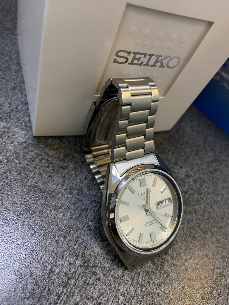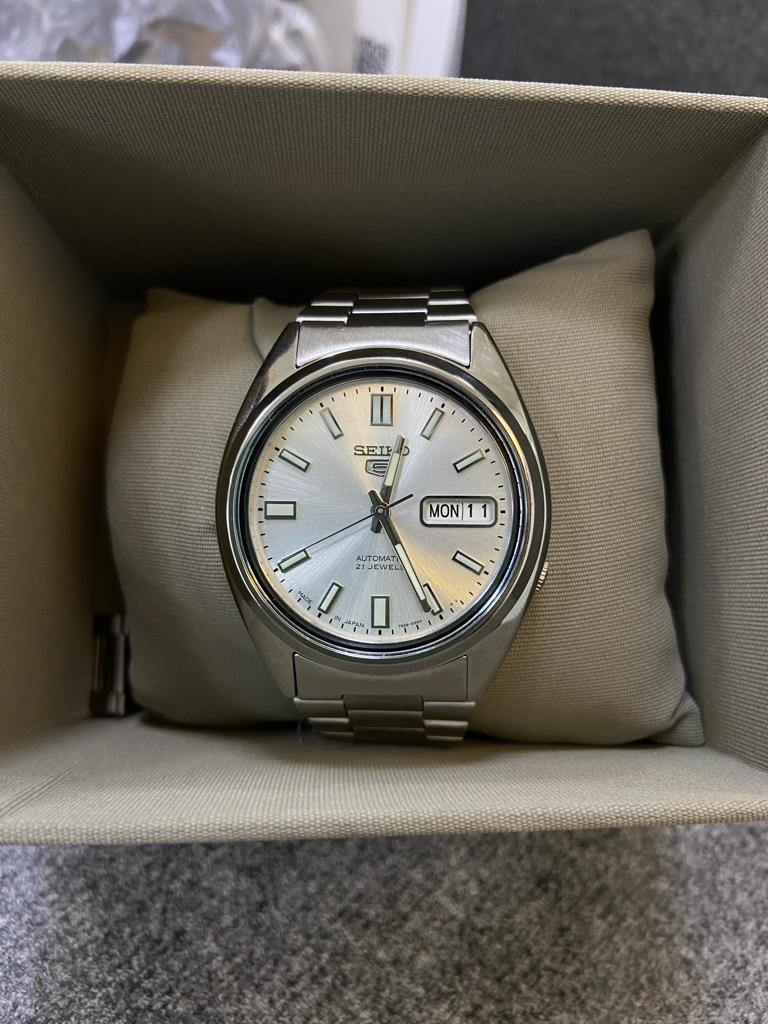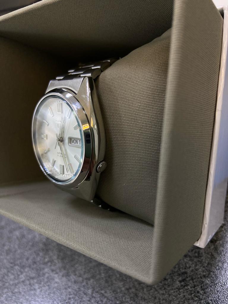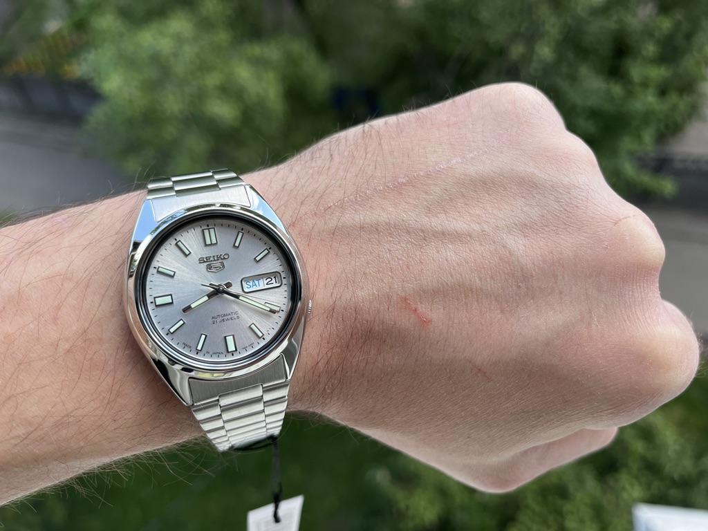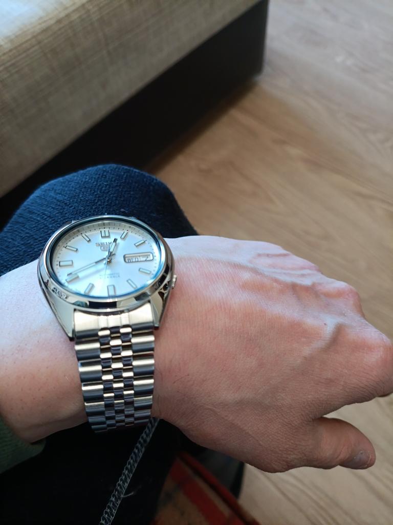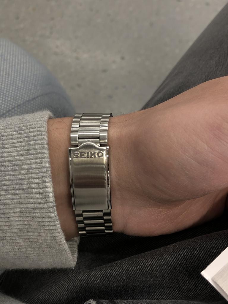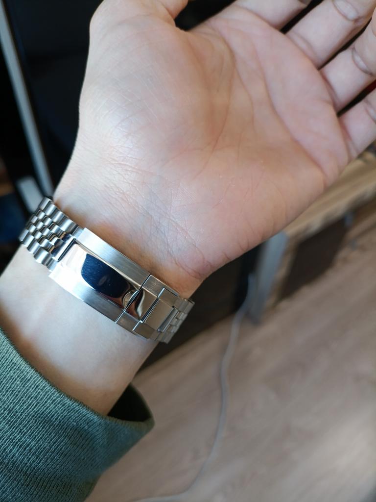 Great watch, modern classic. Arrived in 31 days. Everything is working. Miniature, but not too small, in comparison with the Orient "neo 70" it is only a little smaller. The bracelet is small, and the clasp is old, but it is light. The watch with bracelet weighs 89 grams, the quartz Orient with the photo weighs 106. Weight matters! On a 19cm wrist I have only moved the clasp one hole forward. Maybe you won’t even have to remove the links.