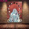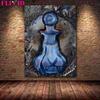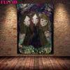 Witch Moon Art Poster Printing Flying Witch Broom Wall Art Full Moon Witch and Spell Bottle Art Canvas