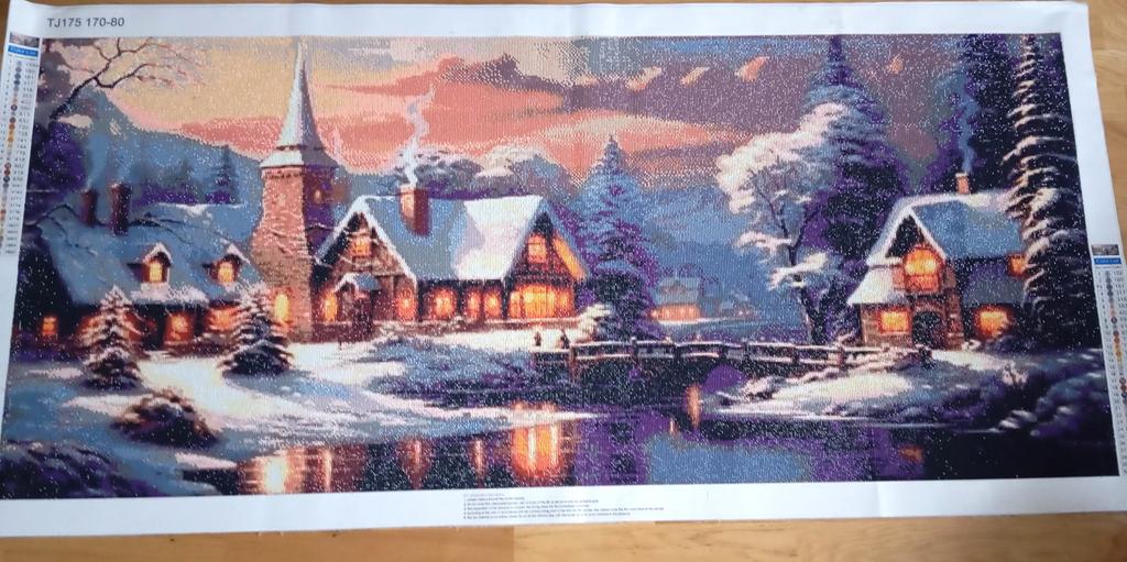It is a large painting and I don't like that it is put together in a box that already remembers something. It has been my experience that the bends do not line up completely even after framing. Only time will tell if there will be enough diamonds. I can't guess. For me, there are too many bowls included, but that will be more of an advantage for someone. So the painting is finished after two months. There were enough diamonds, there are still some left, the warehouses are almost invisible, so everything was fine and I recommend it.