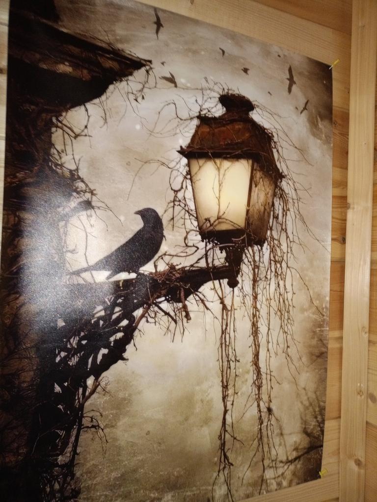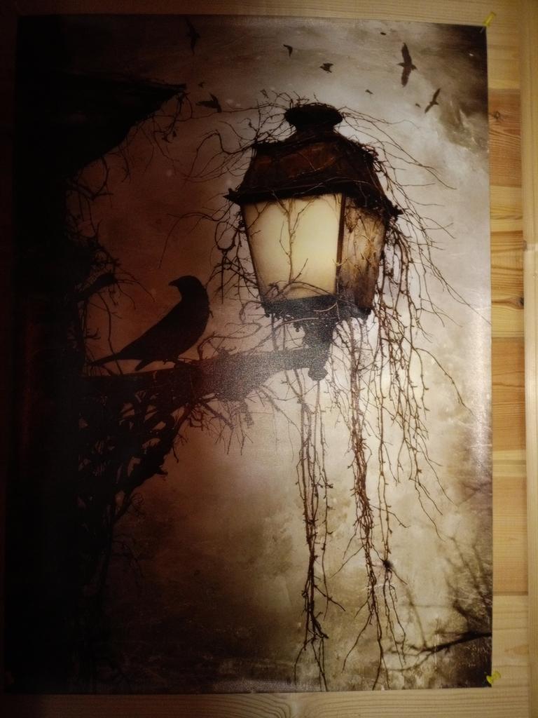 Vintage Black Crow Lamp Canvas Paintings Halloween Posters and Prints Wall Art Pictures for Living Room Wall Decoration Cuadros