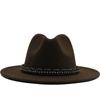 New Women Men Wool Fedora Hat With Leather Ribbon Gentleman Elegant Lady Winter Autumn Wide Brim Jazz Church Panama Sombrero Cap