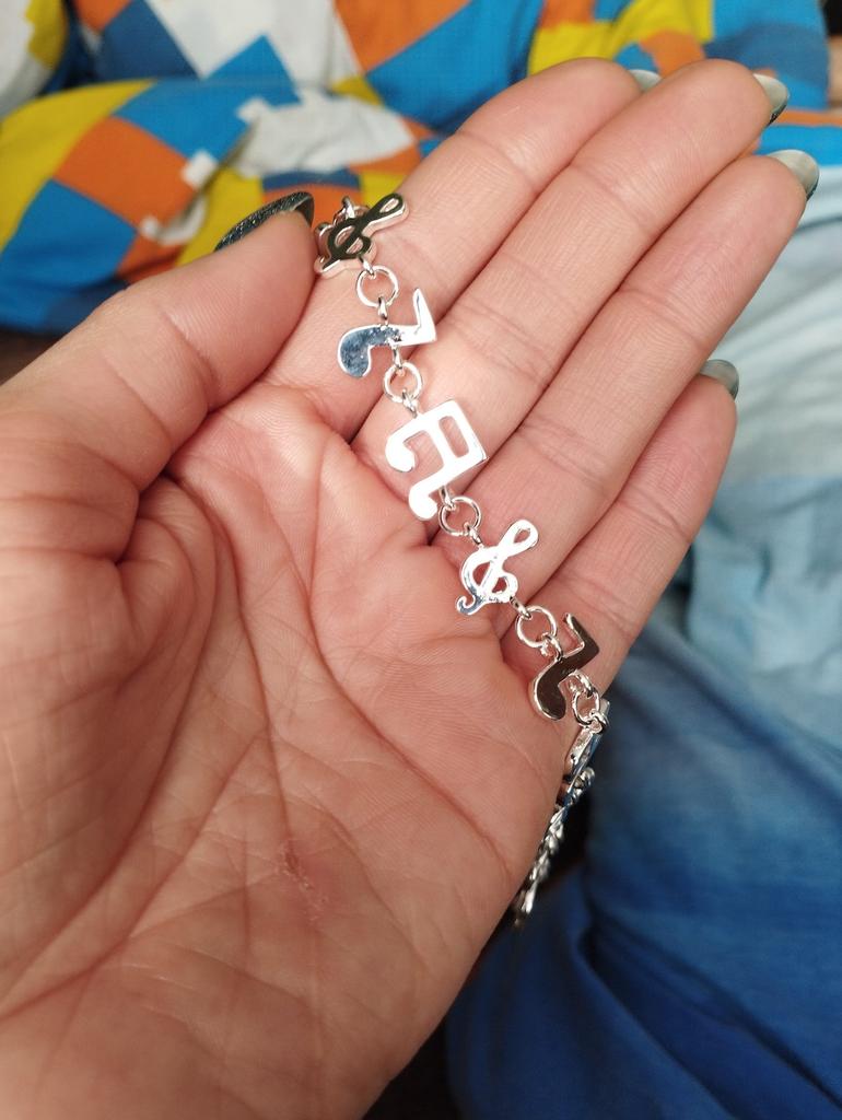 He was pretty at first. Then all the rings at the toe parted. Lost something, tore something. The name remained from the bracelet.