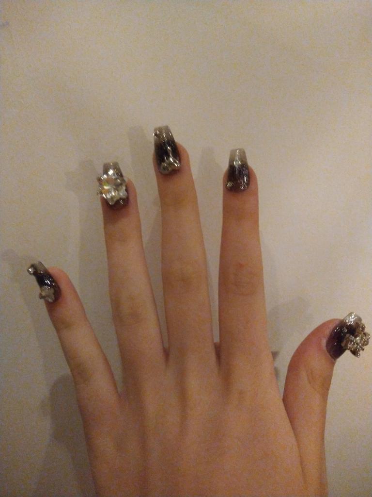 HANDMADE Artificial Nail Black Metal Cool Phototherapy Nails Reusable and Removable Nails