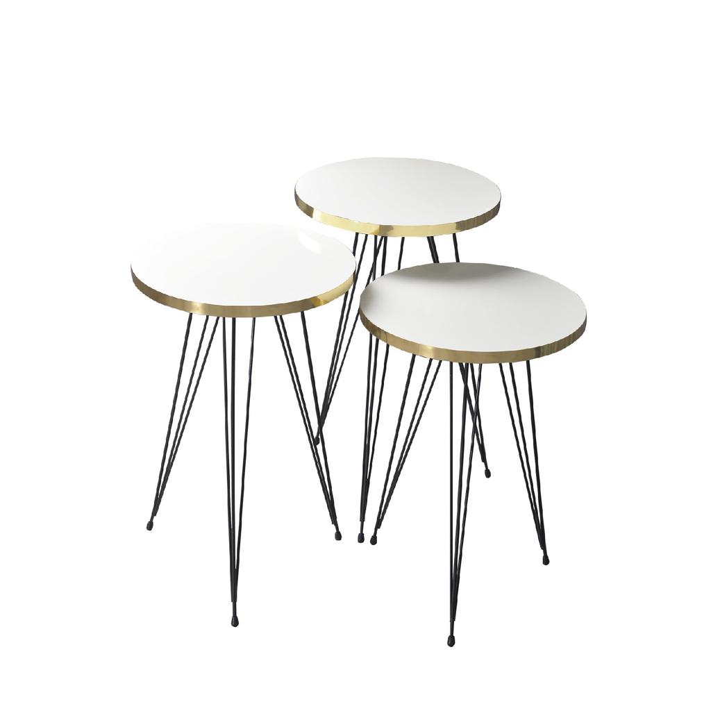 Tea Service Table Nesting Table Black Wire Leg Gold White Furniture Living Room