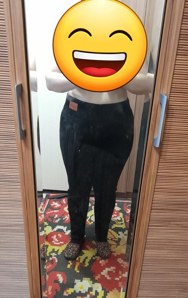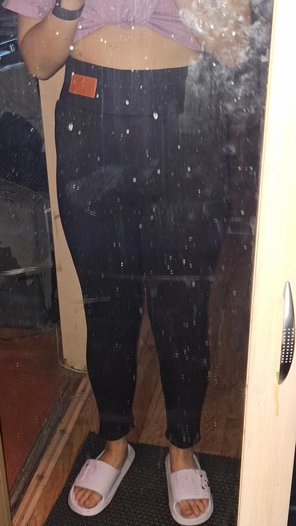 Size S is too big in the waist, and at the same time the length is slightly short. The pants don't stretch, are strangely sewn, as if tapered towards the bottom, with a high waist. In general, I don't even know how to wear them 🤷