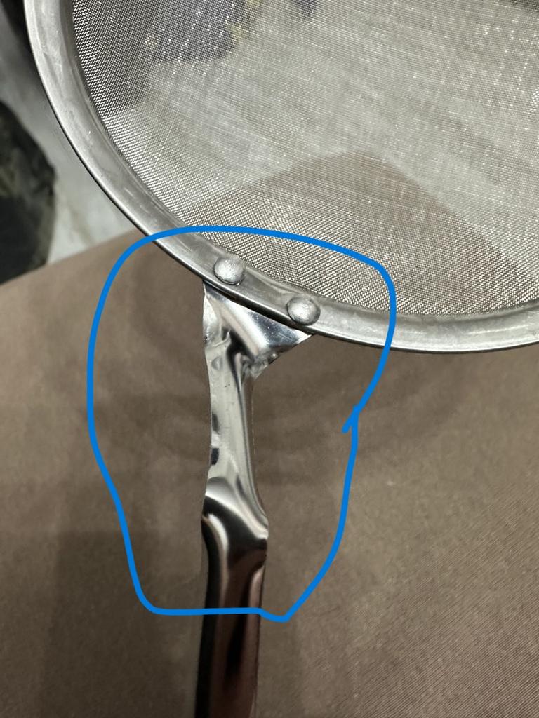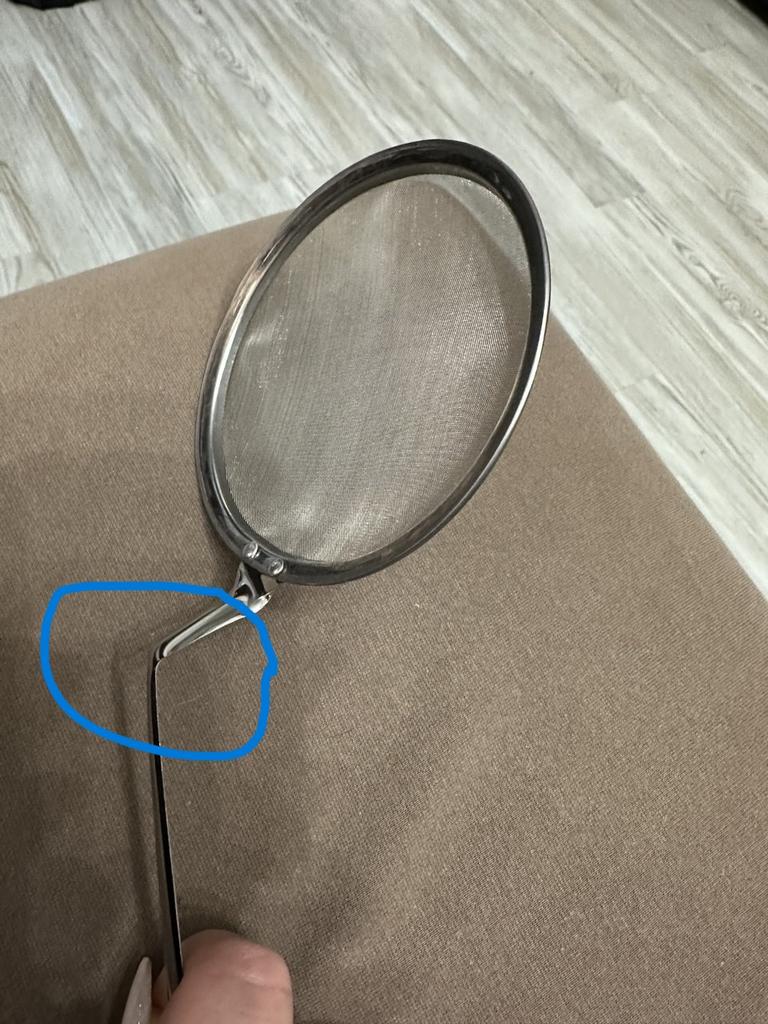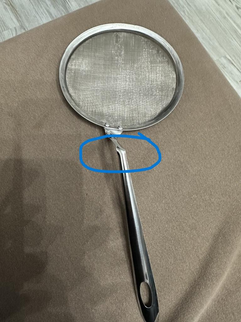 The sieve arrived with a bent handle. I fixed it. It's convenient. Thank you!