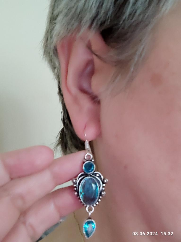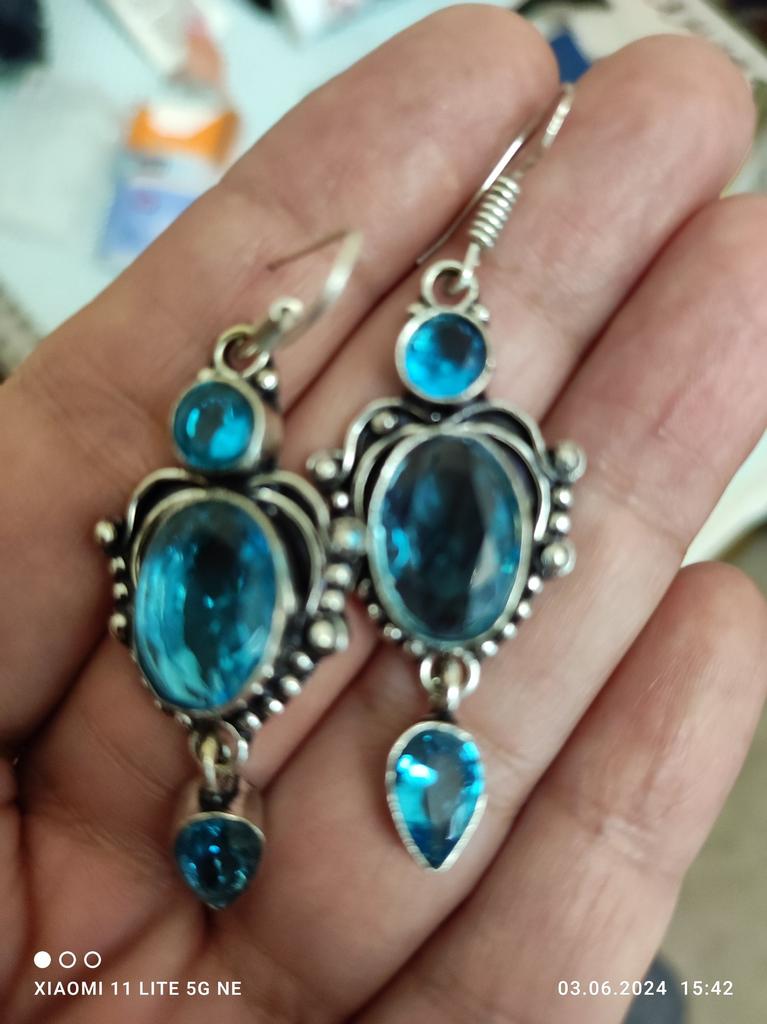 Swiss Blue Topaz, Gemstone 925 Sterling Silver Handmade Beautiful Jewelry Earring