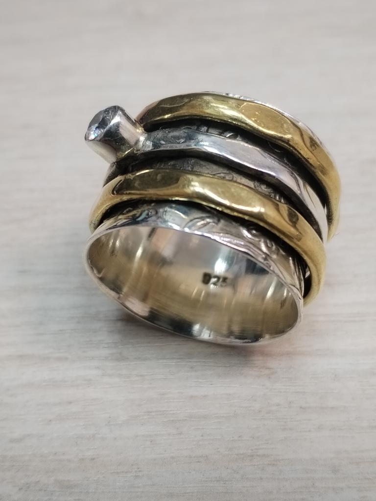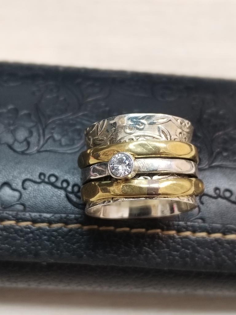 White CZ Gemstone Ring, Spinner Ring, Two Tone Ring, Handmade Designer Ring, Statement Ring, Boho Ring, Silver Jewelry