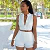 Women's V Neck Slim Jumpsuit Summer Solid Color Sleeveless Tight Rompers High Waist Shorts