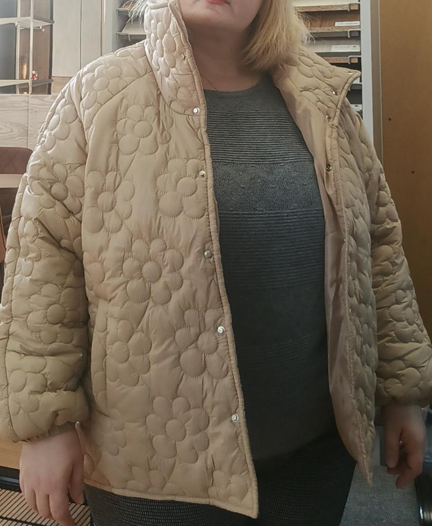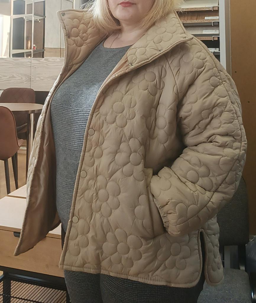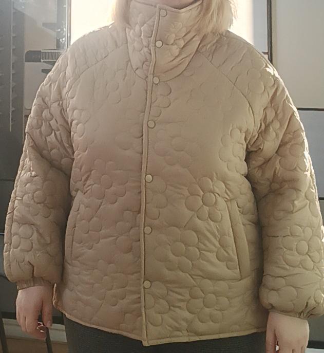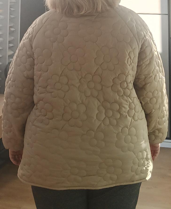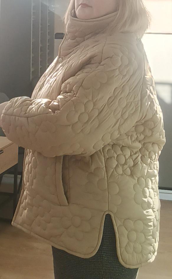 Plus Size Women's Winter Jacket With Stand Up Collar Placket With Buttons And Floral Quilting With Cotton Sandwich In The Middle