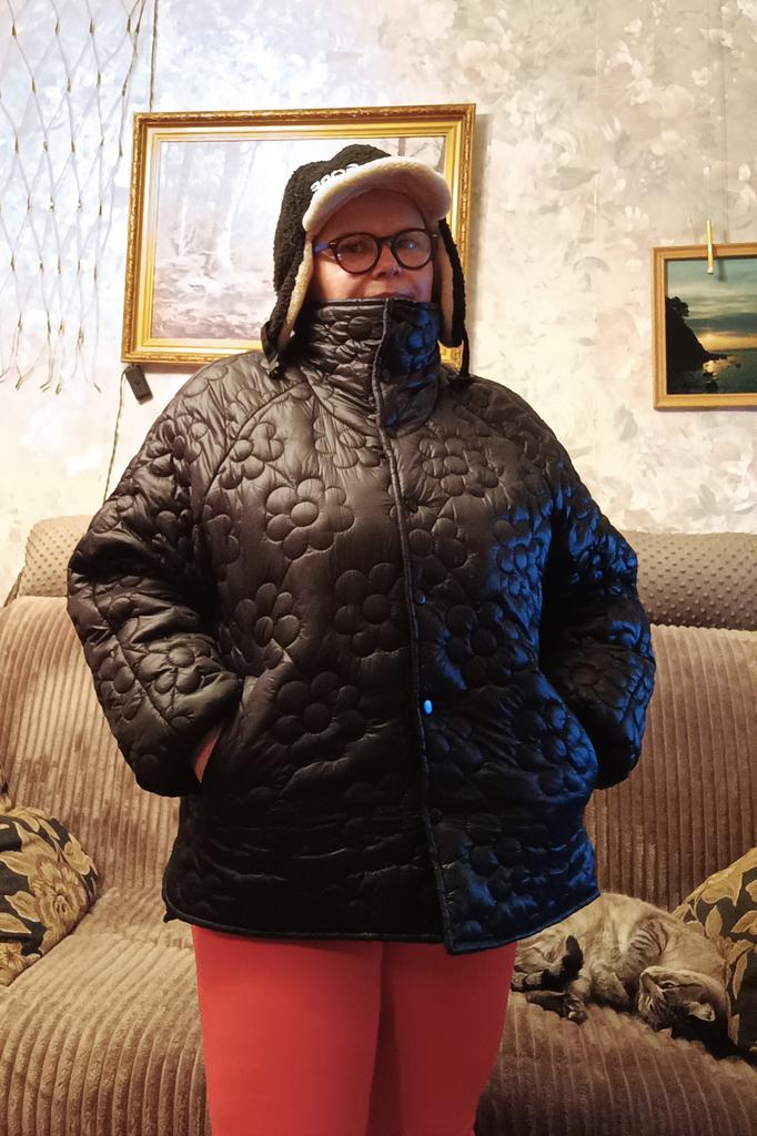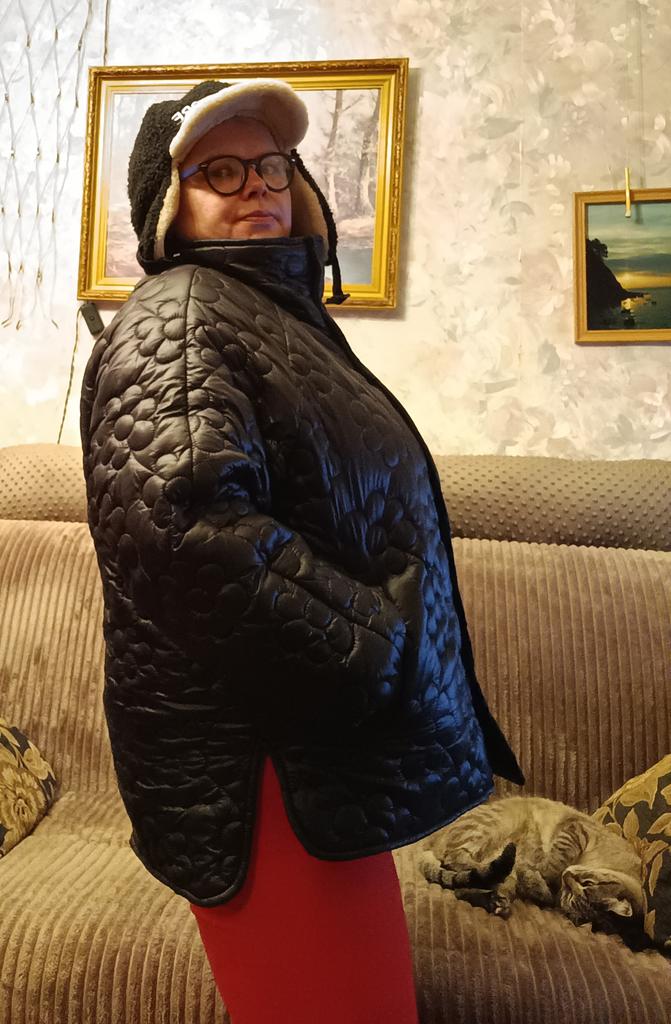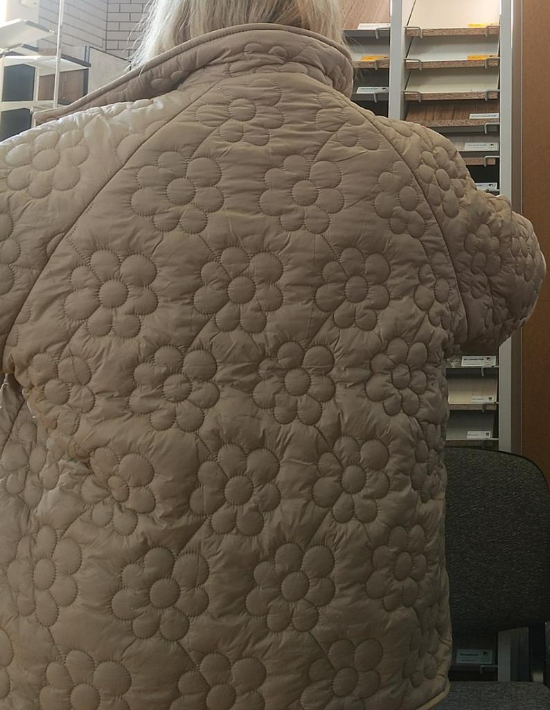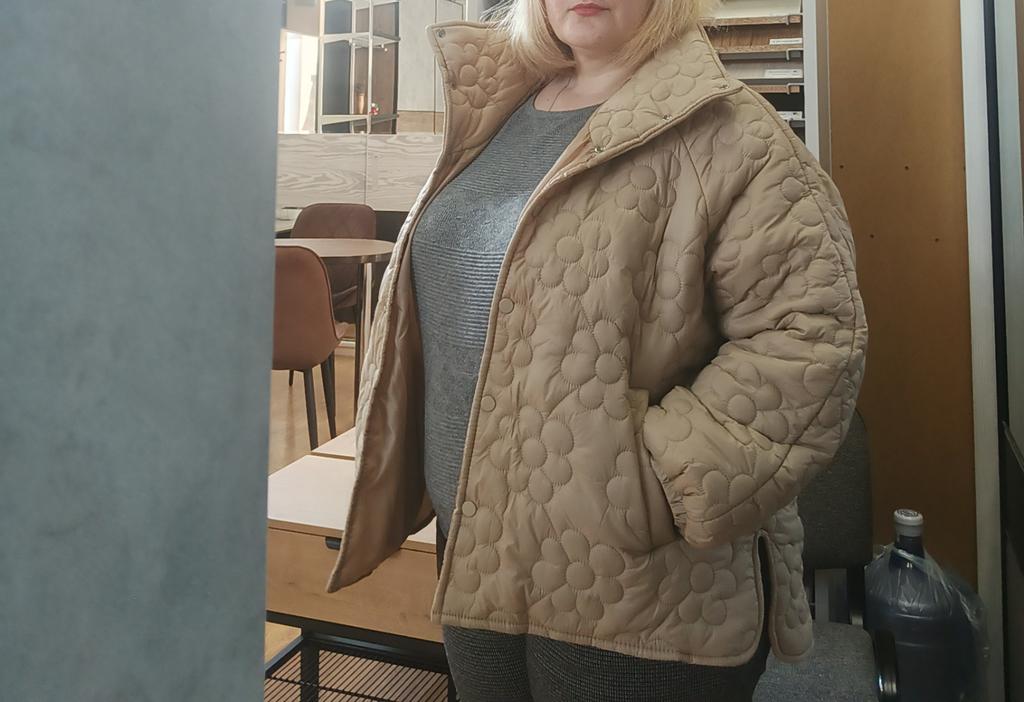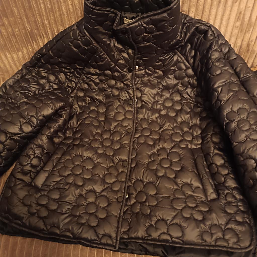 Plus Size Women's Winter Jacket With Stand Up Collar Placket With Buttons And Floral Quilting With Cotton Sandwich In The Middle