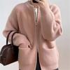 Double Zipper Solid Color Sweater Cardigan Women's Loose Casual Knitted Jacket