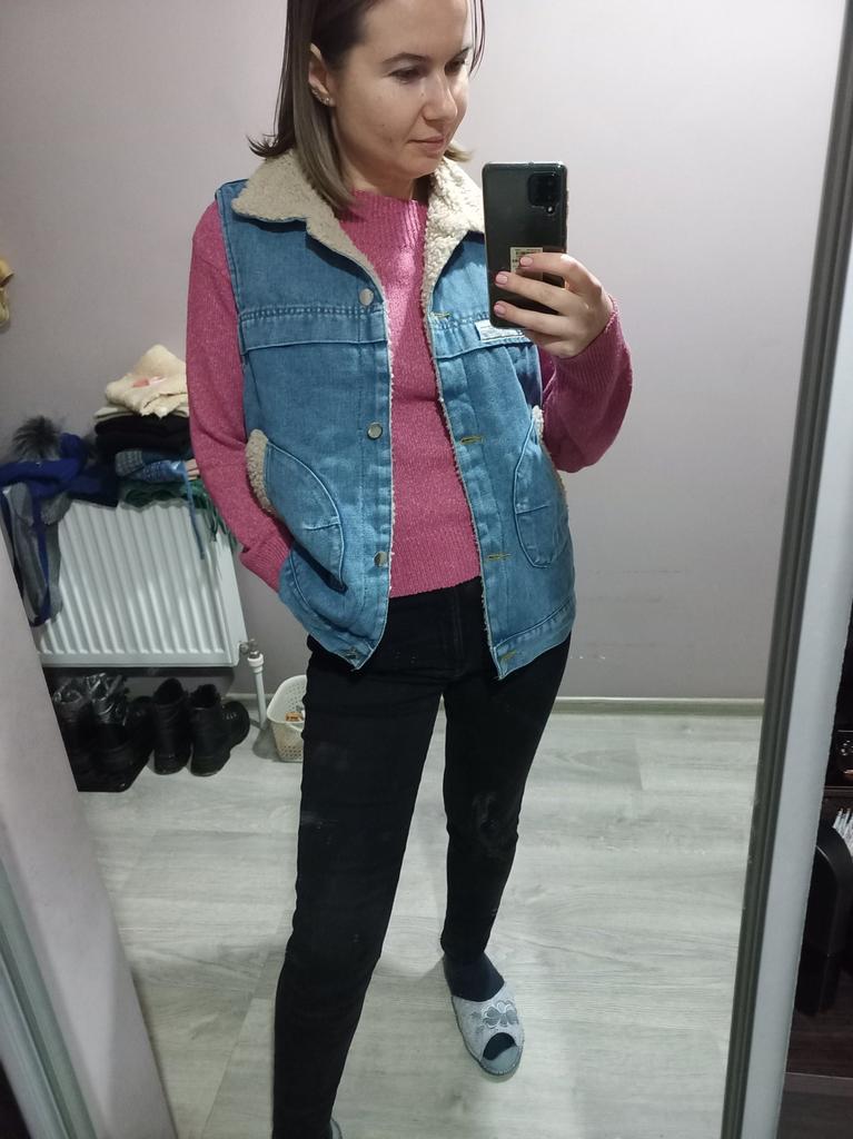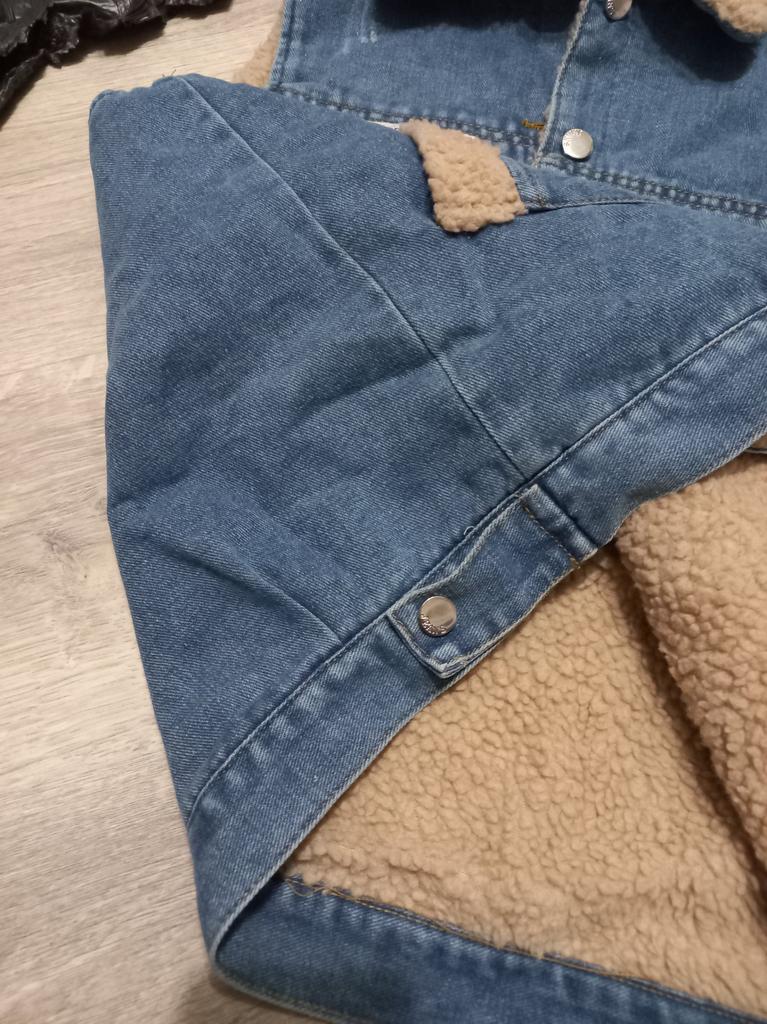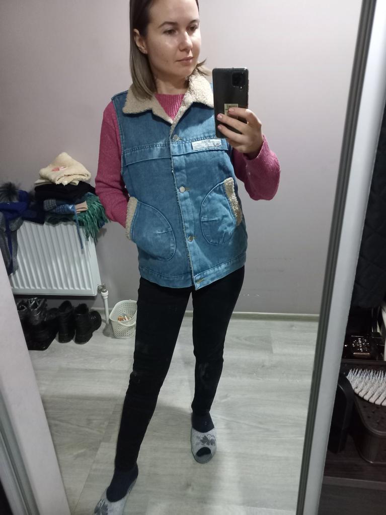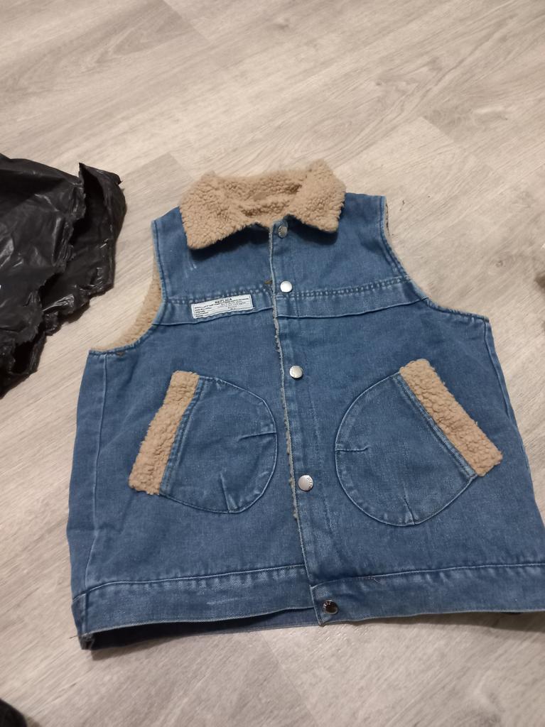 Good quality fabric, denim, faux fur. Good tailoring. Warm vest.