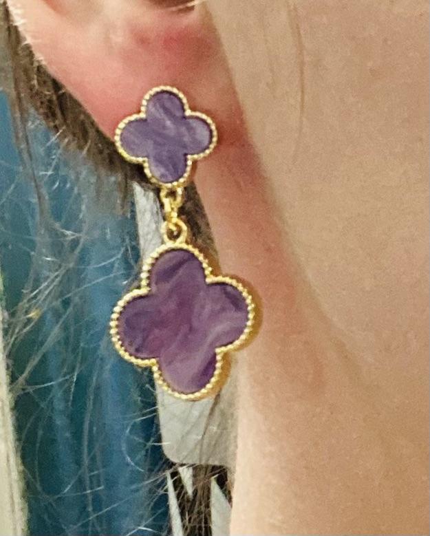Long Purple Four-Leaf Clover Earrings Fashion Temperament Ladies Earrings