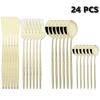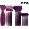 24Pcs Black Western Dinnerware Set Stainless Steel Cutlery Set Fork Steak Knife Spoon Tableware Set Flatware Silverware Set