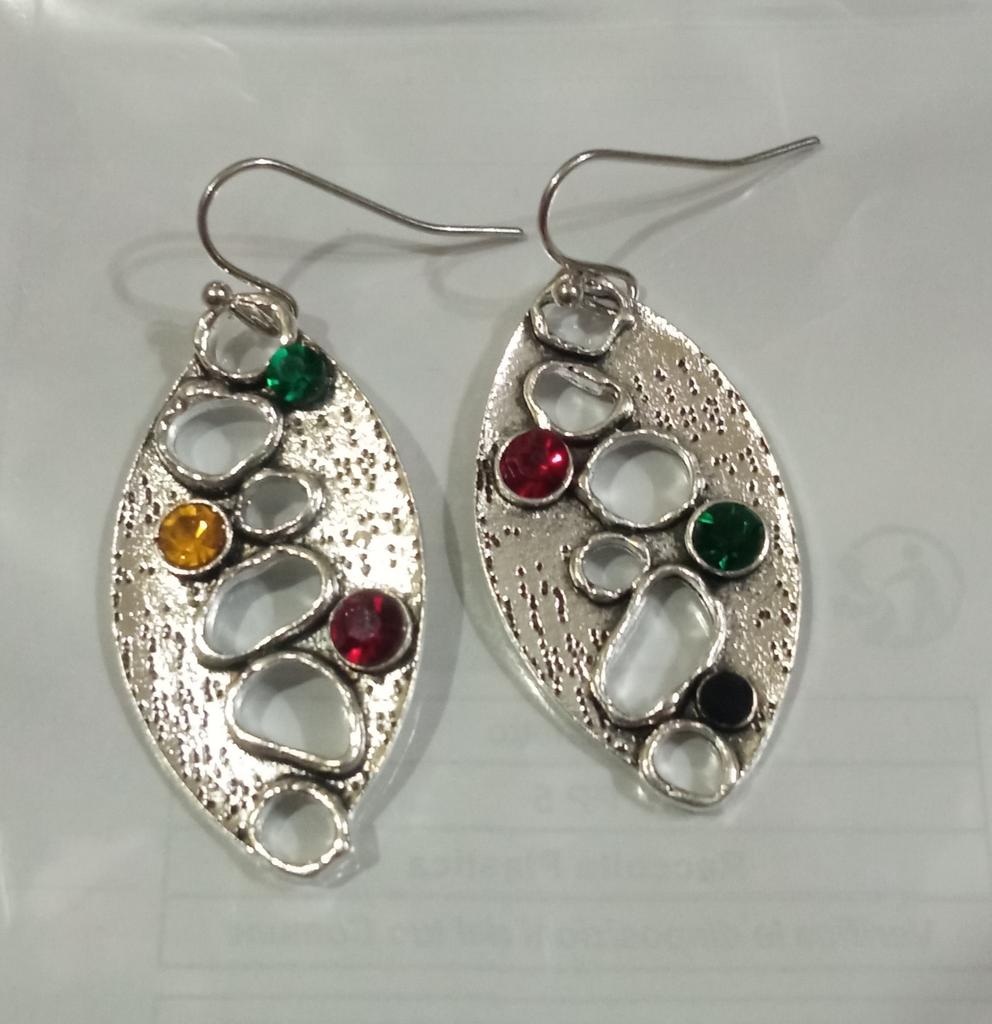 Vintage Hollowed Out Leaves Inlaid with Rhinestone Earrings, Hot Selling Antique Silver Colorful Crystal Earrings for Women
