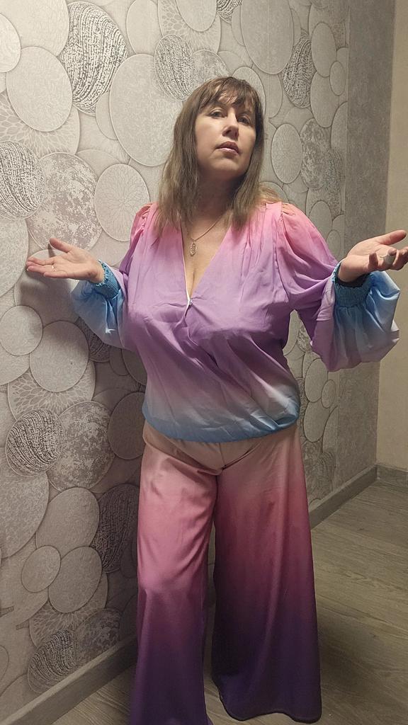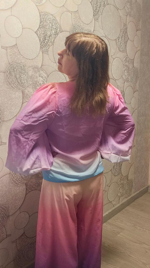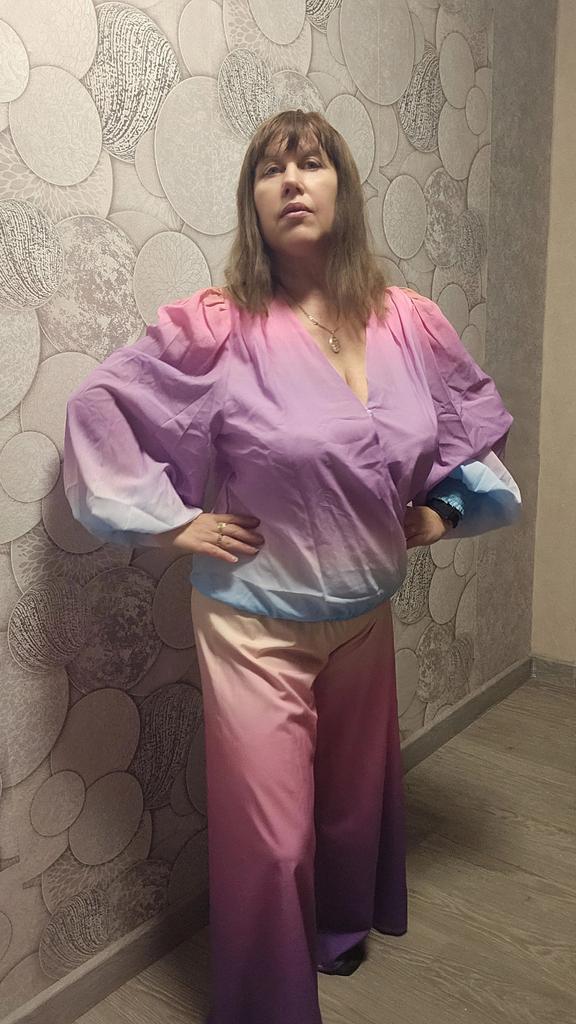 The color in the blouse is not mixed up, but a more luxurious blouse is presented in the photo. This blouse doesn't have such wide sleeves with elastic, and the bottom is completely nothing .... You need to remove the elastic at the very bottom, as it's too tight.. And completely replace the sloppily sewn-on halves on the front, one overlapping the other ... This fabric saving brought no one joy during the fitting. It cannot be returned, as the return shipment is paid ... There is no possibility to send the video of shame .