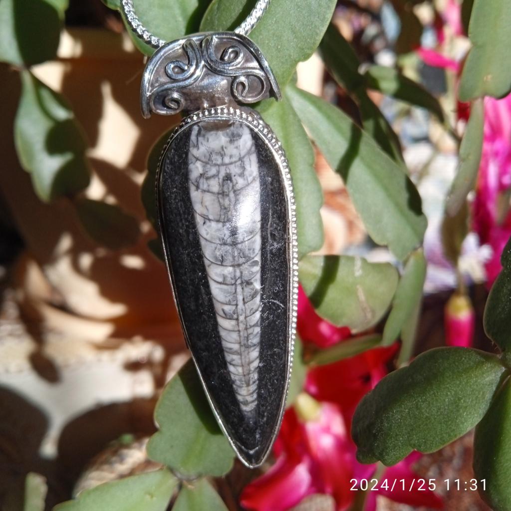 Orthoceras Fossil Pendant 925 Sterling Silver Pendant Vintage Pendant Handmade Jewelry Genuine Gemstone Pendant Gift For Him Healing Stone