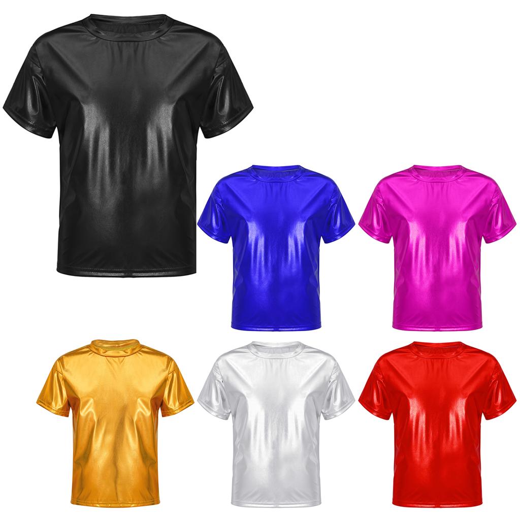 Kids Girls Boys Sparkling Short Sleeve Tops Fashion Round Neck T-shirt Dance Performance Costume