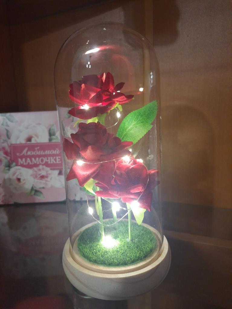 Style Simulation Rose Immortal Lovers Bouquet Anniversary LED Log Glass Home Birthday Gift Artificial Flowers