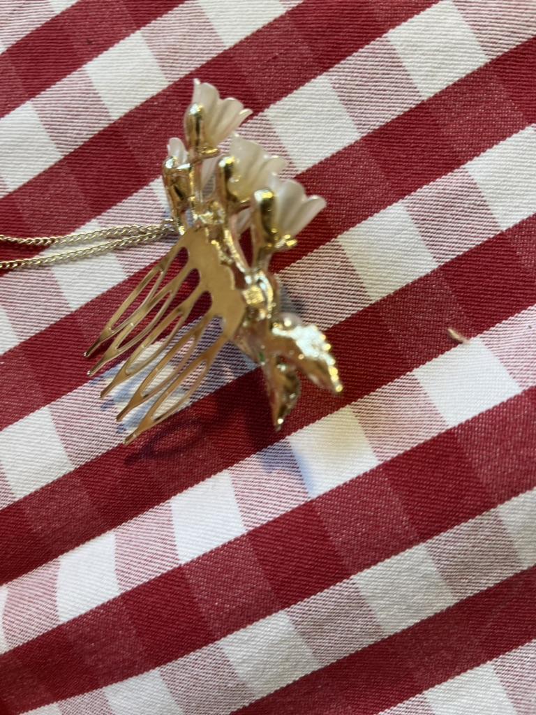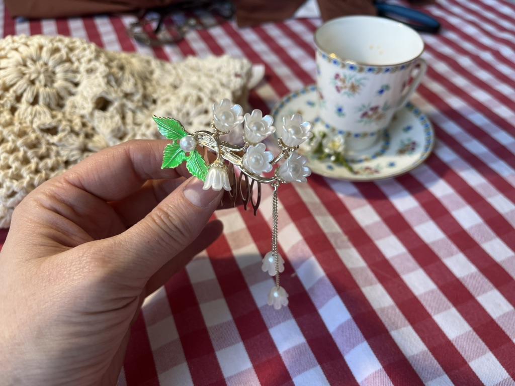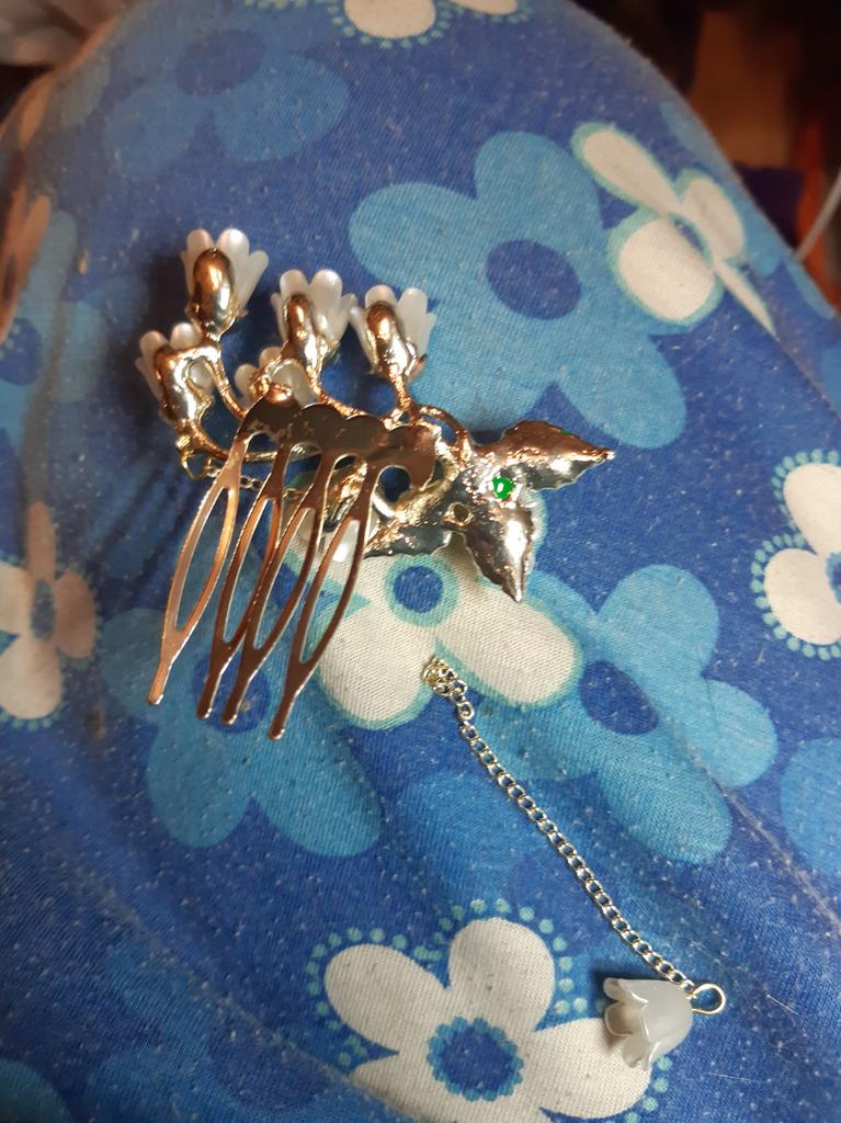 Very cute comb. I need to get the hang of putting it on. Thank you very much.