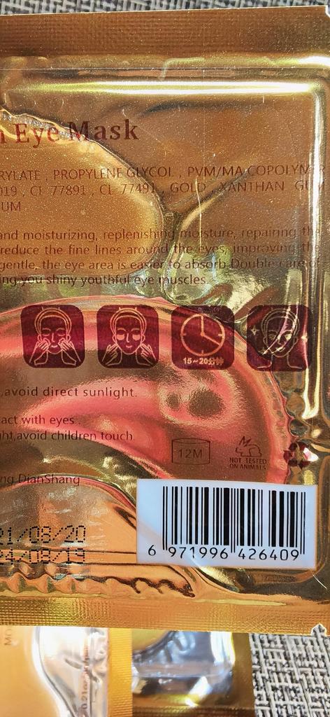 😍😍Eye patch These eye patches are very light and improves wrinkles, dark yellow skin, dryness and maintains the brightness of the skin. Effect: anti-aging, whitening, wrinkle care, anti-puffiness Arrived in 3 weeks 🌈🌈🌈🌈 CONCLUSIONS Excellent value for money💯💯💯💯