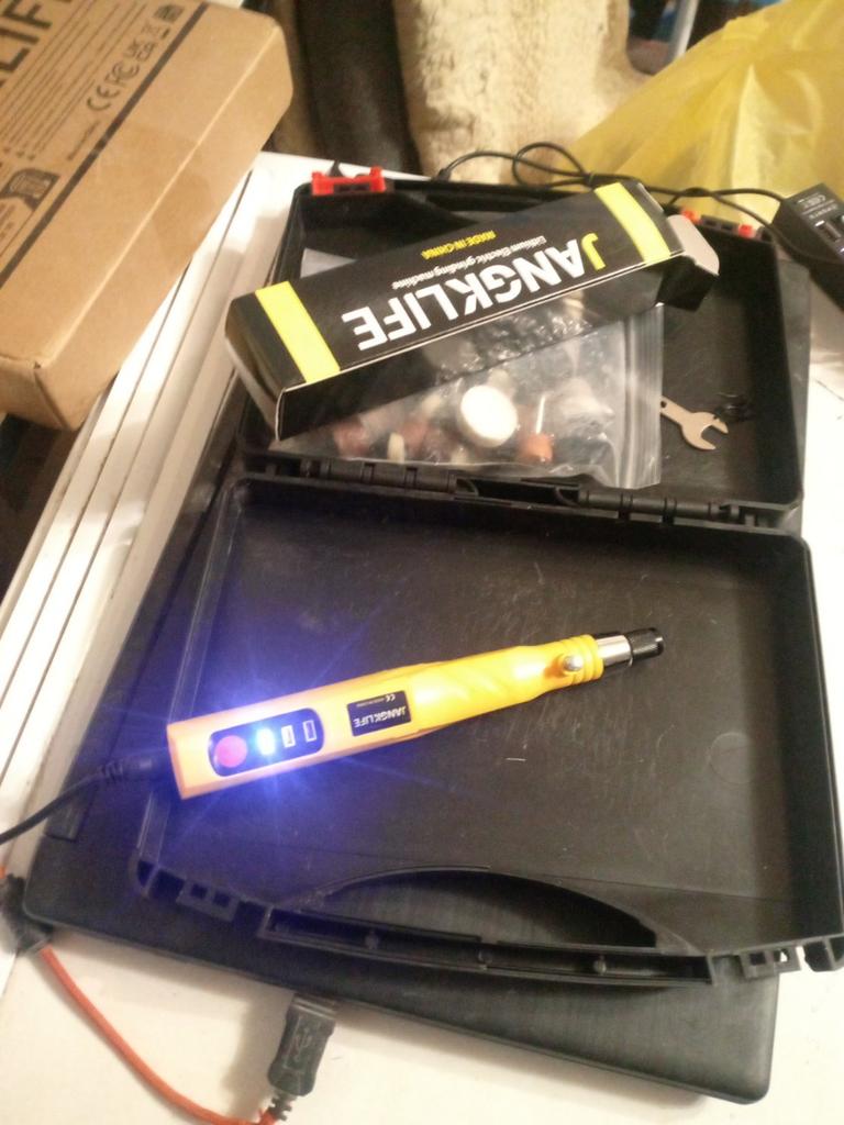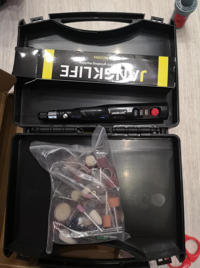 A good case and set, though the whole set is simply placed in a bag, it would be much more convenient if the case had compartments for the grinder itself and for the attachments, but there is none, just a case without compartments, there is a grinder and a bag with attachments dangling there. The grinder has no power, it can be easily braked by hand, and under any load, the shaft stops rotating. So I do not recommend buying this product, maybe it will do for sharpening nails, but for normal mechanical loads, this grinder is not suitable.