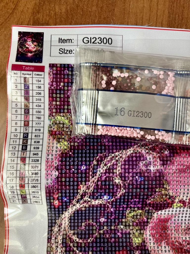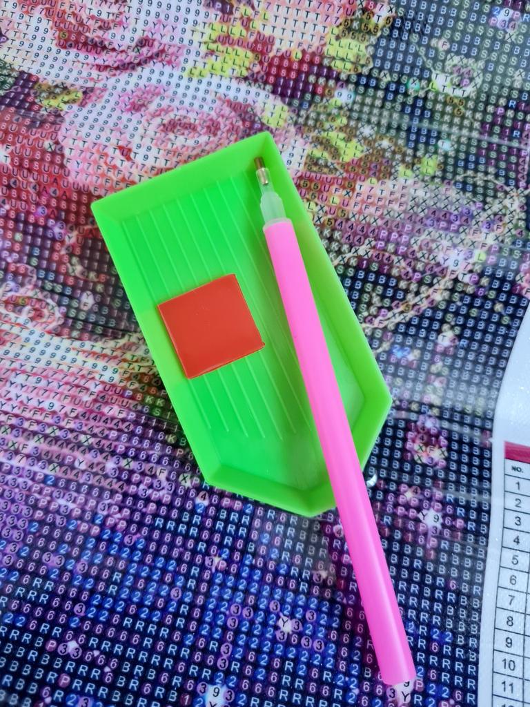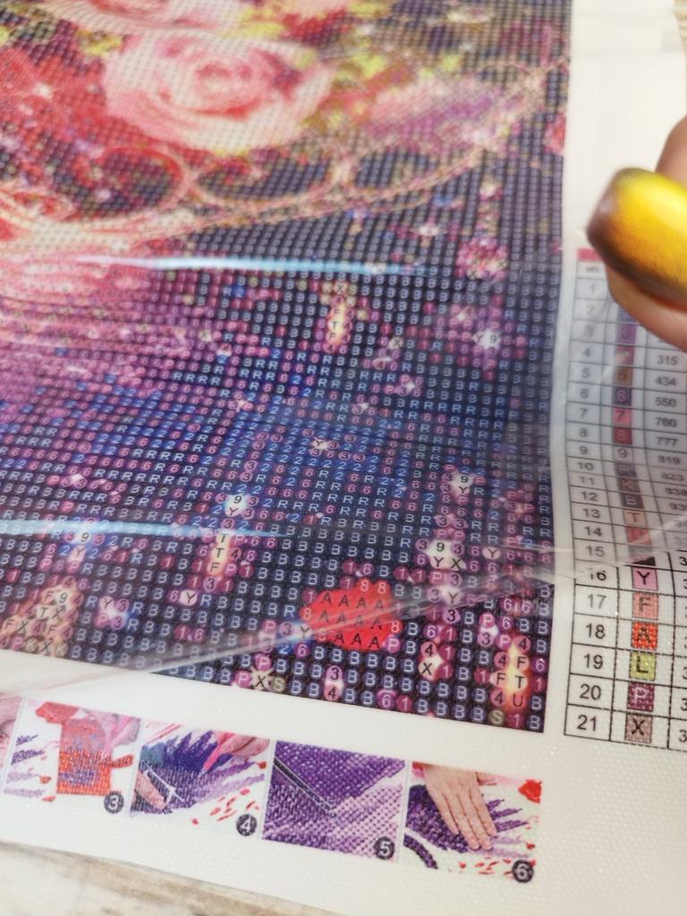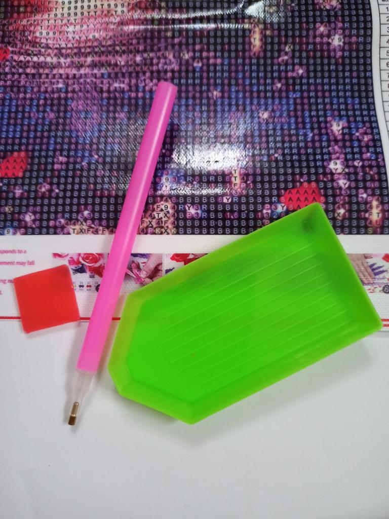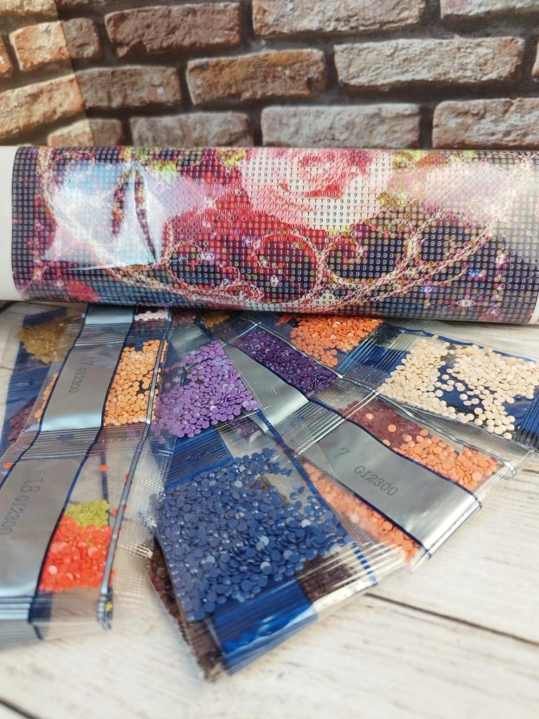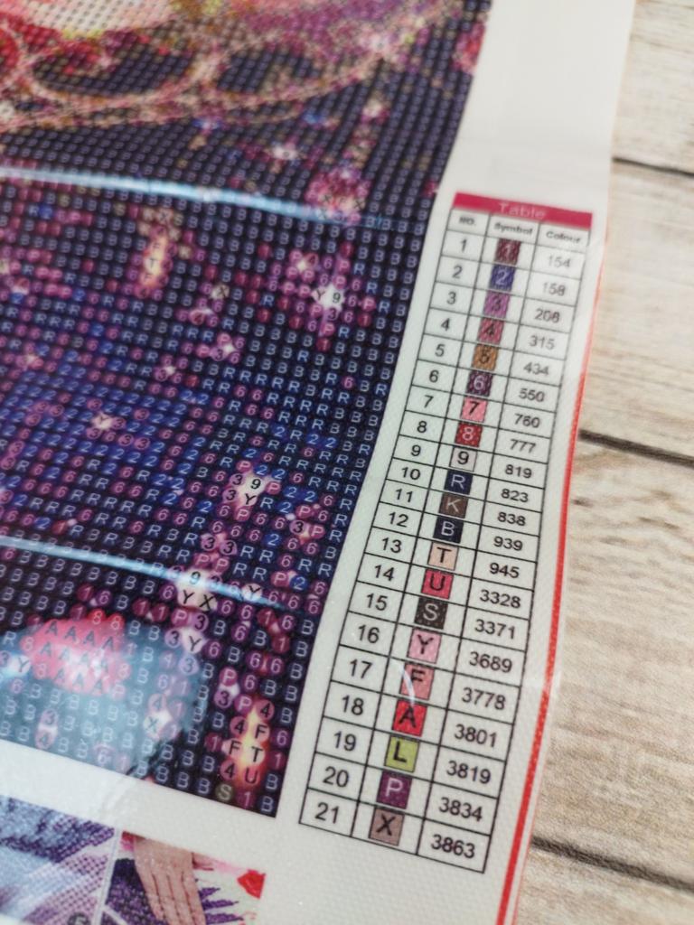 I love diamond paintings, I ordered this painting as a gift, so I didn’t collect it. Set includes 21 colors of stones + pen, bowl and glue. It’s convenient that there is a transparent film on top, you can see the pattern, so it will be very convenient to pick up. Painting size 30 by 40. It’s a pity there are no bags to pour the stones in, since they are not in zip bags.