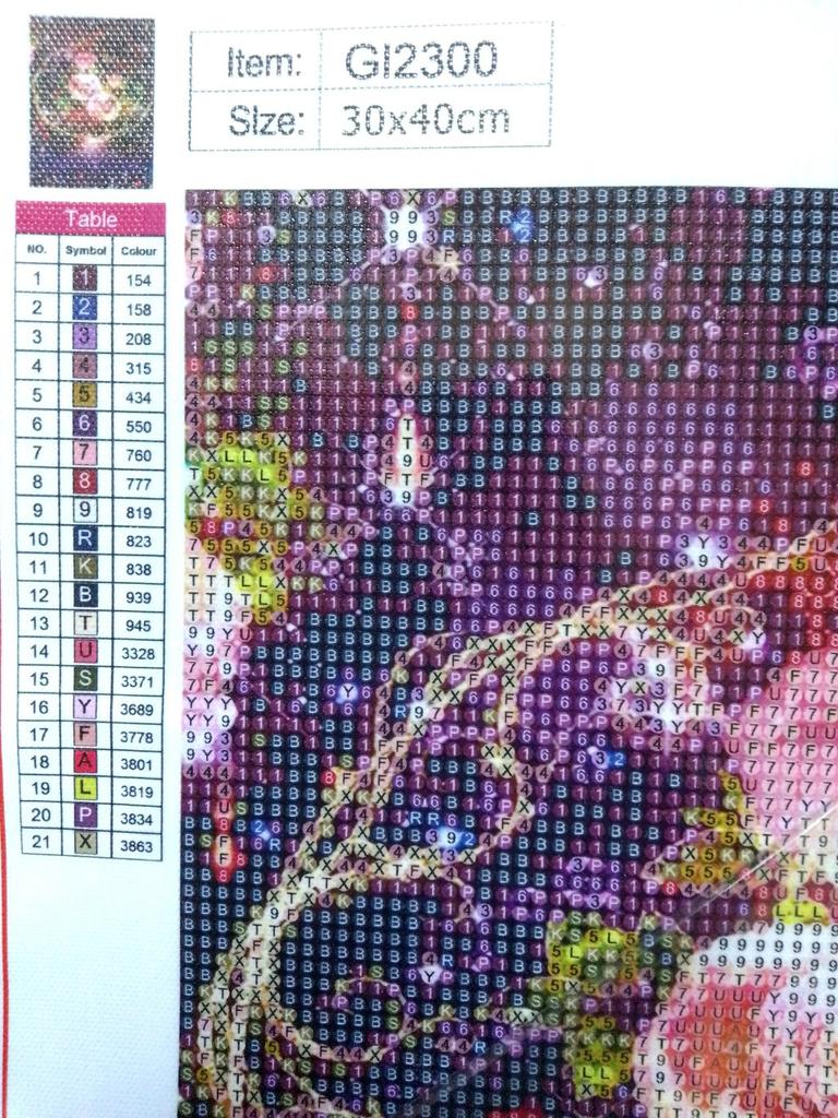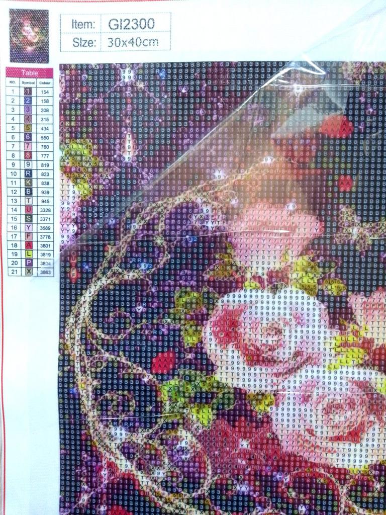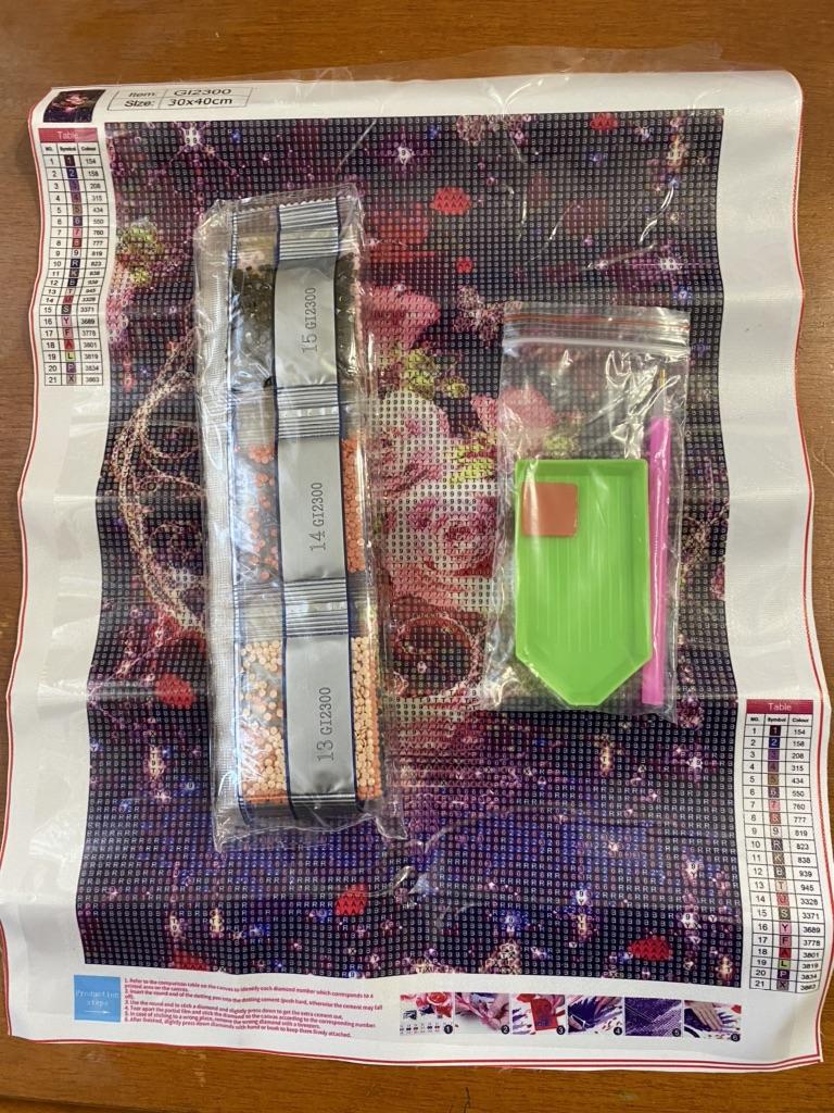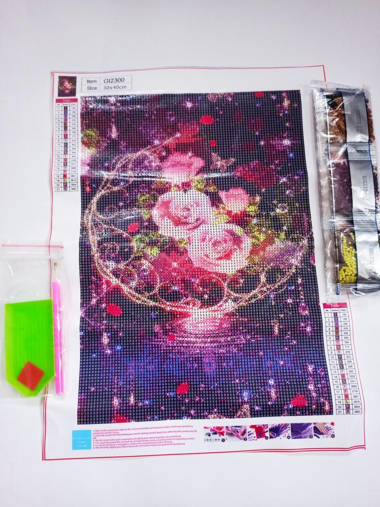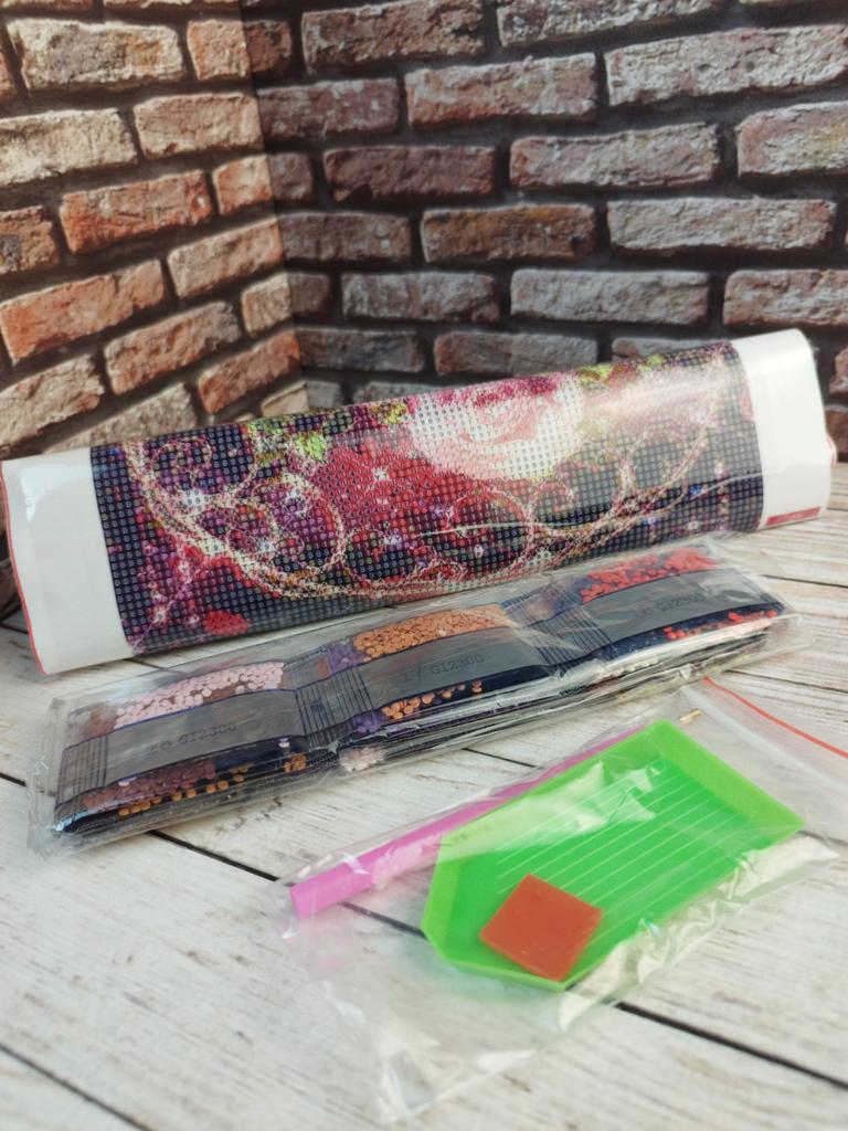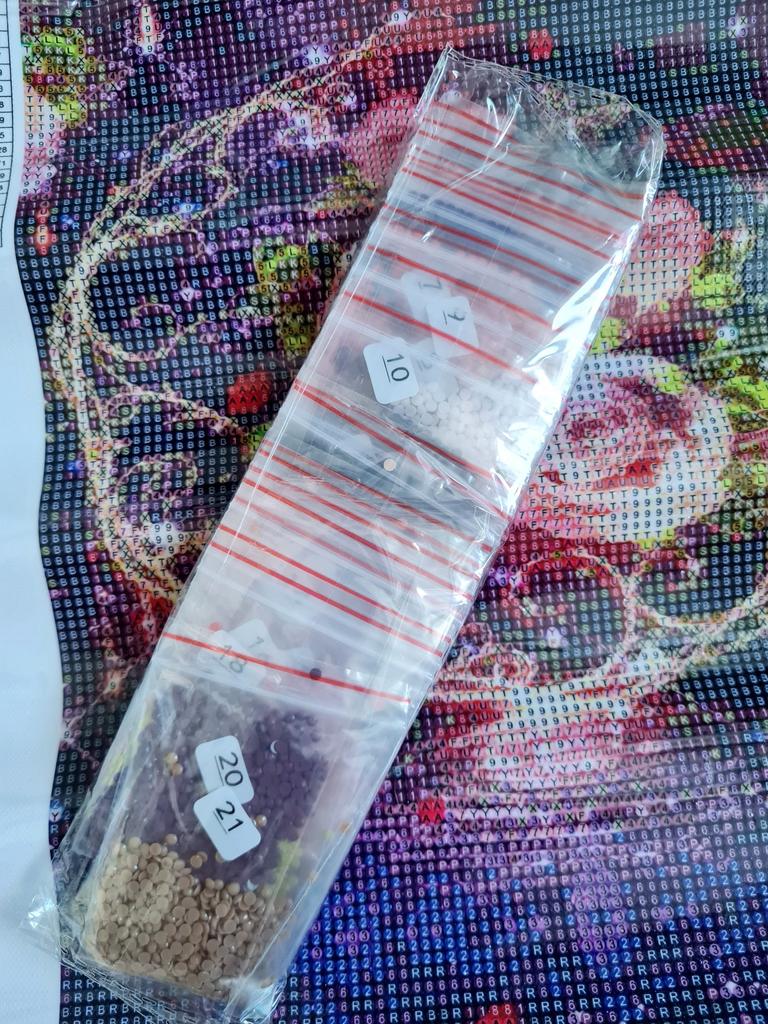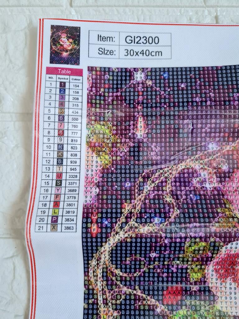 I love diamond paintings, I ordered this painting as a gift, so I didn’t collect it. Set includes 21 colors of stones + pen, bowl and glue. It’s convenient that there is a transparent film on top, you can see the pattern, so it will be very convenient to pick up. Painting size 30 by 40. It’s a pity there are no bags to pour the stones in, since they are not in zip bags.