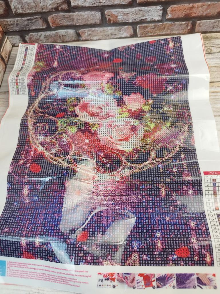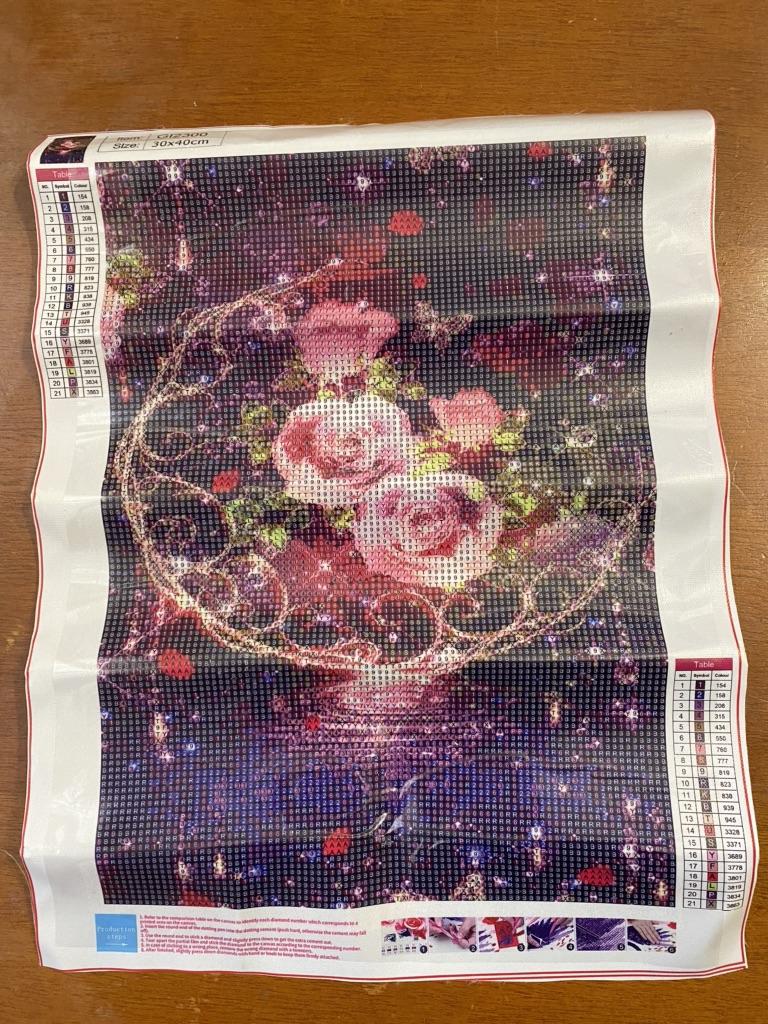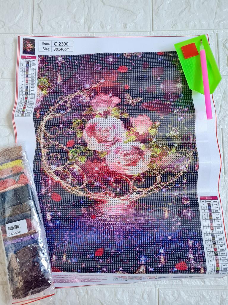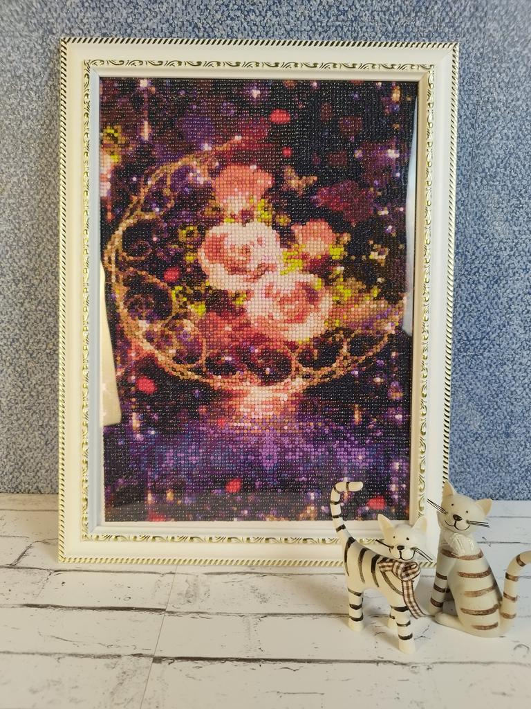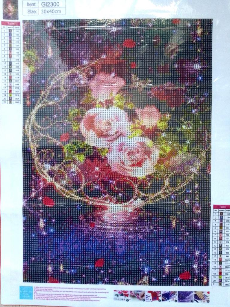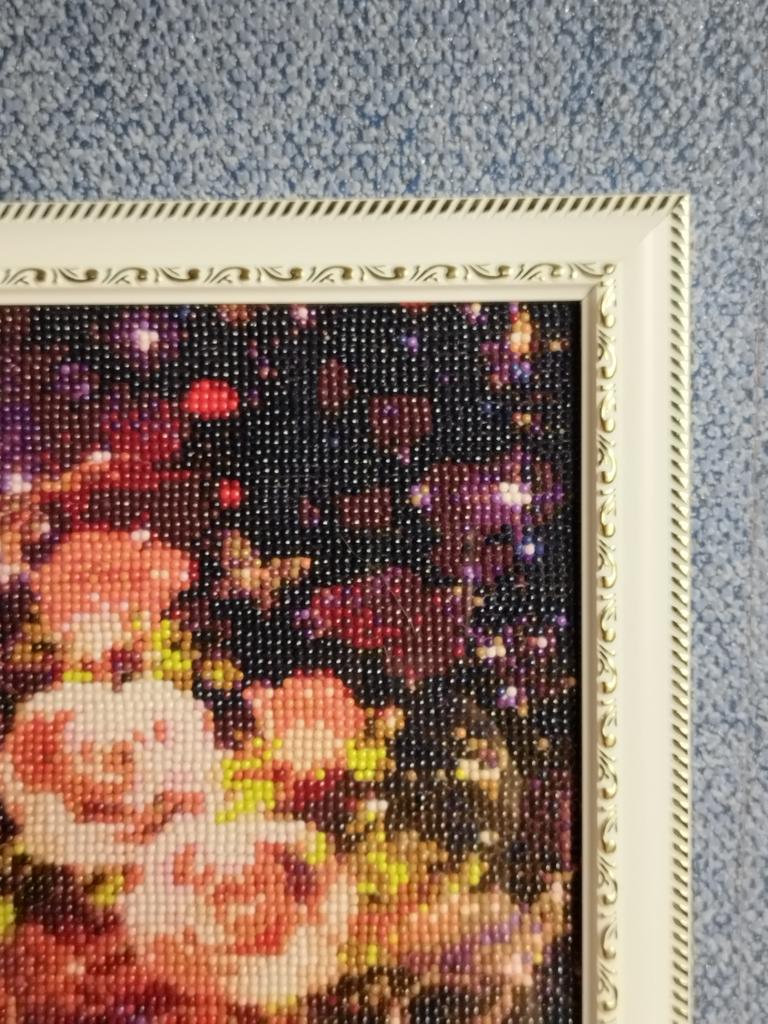 I love diamond paintings, I ordered this painting as a gift, so I didn’t collect it. Set includes 21 colors of stones + pen, bowl and glue. It’s convenient that there is a transparent film on top, you can see the pattern, so it will be very convenient to pick up. Painting size 30 by 40. It’s a pity there are no bags to pour the stones in, since they are not in zip bags.