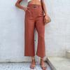 Summer Women Fashion Cotton Linen High Waist Loose Solid Color Pants