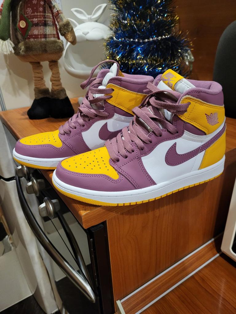 Air Jordan 1 Retro High OG Brotherhood Unisex Sneakers Gold University-Gold Light-Bordeaux 555088-706