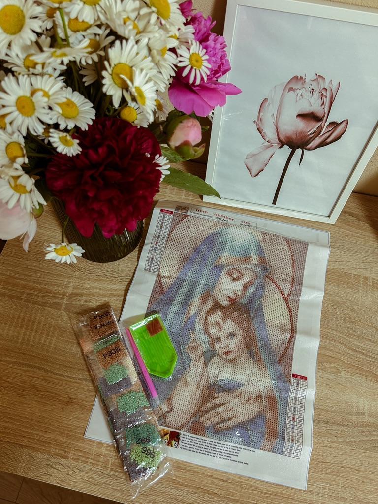 Painting by numbers is a ready-made set for creativity😍 The process of working on a diamond mosaic is easy and exciting. Laying out pictures using this technique is a great activity for stress relief, meditation and relaxation. The set includes everything you need: a canvas with an adhesive layer, round stones of different colors, a stylus, dry glue, a tray for convenient sorting of stones. Size: 30x40 cm. If you plan to work on the mosaic for several evenings, we recommend gradually removing the protective layer from it as you progress. The finished work looks colorful and original. The finished product can be used to decorate the interiors of houses.