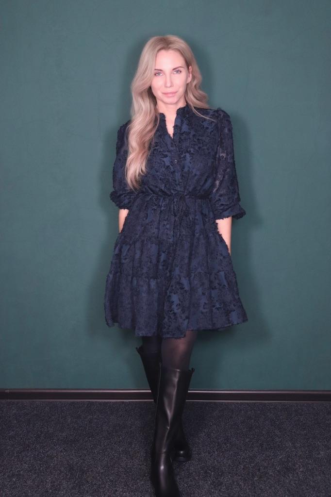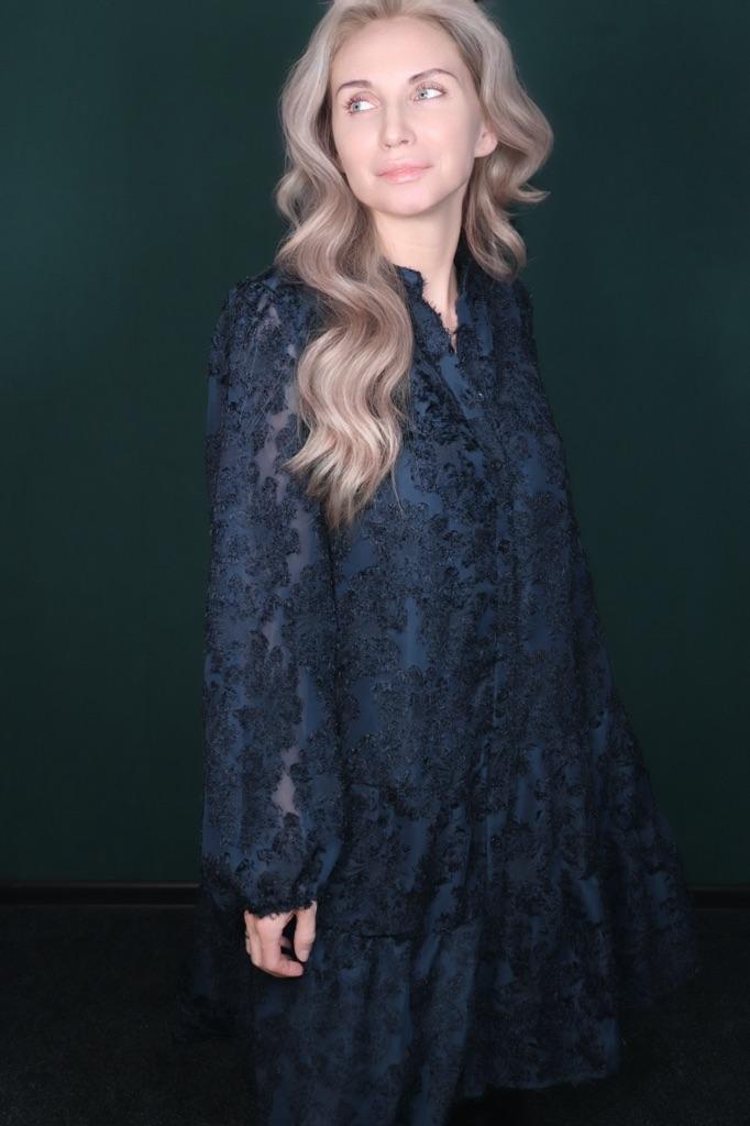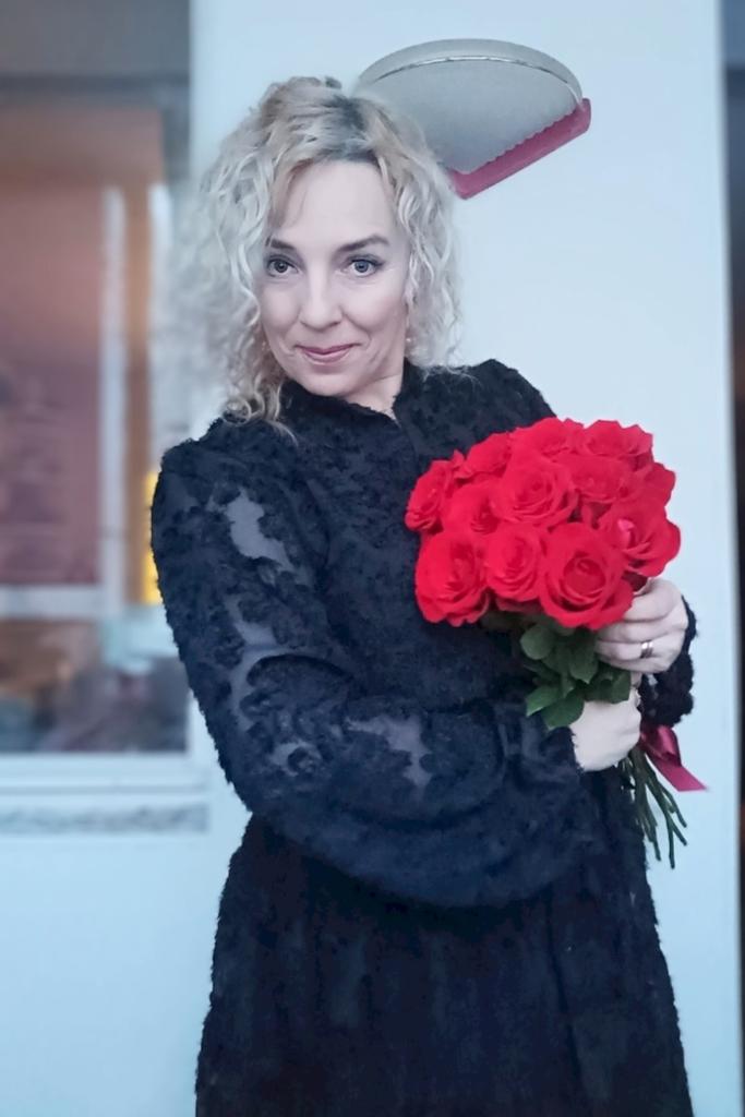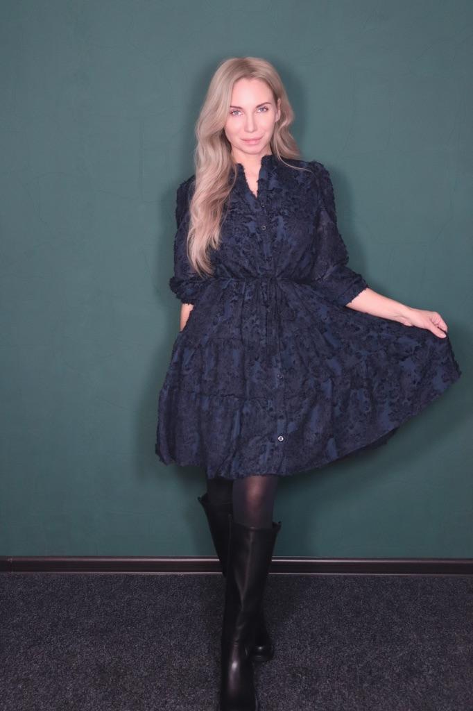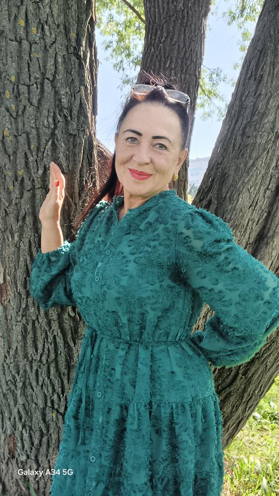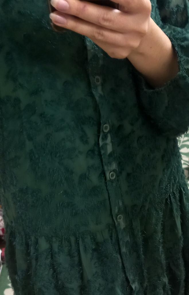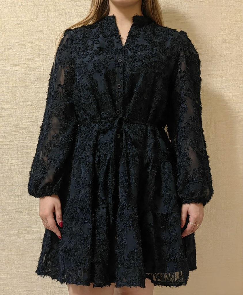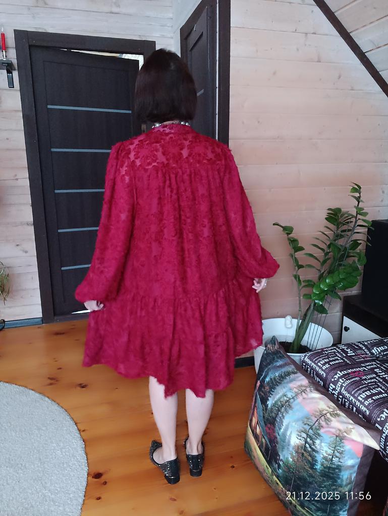 The dress is m 46-48 big, especially the sleeves, the black color doesn’t suit me, I’m not delighted, but the fabric is interesting, it was adjusted in the studio, I won’t wear it for regular wear