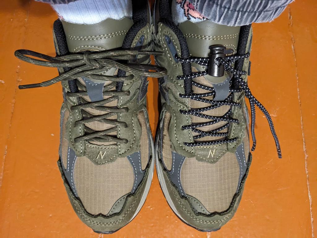 The sneakers have elastic laces with a lock and standard round ones are included.
