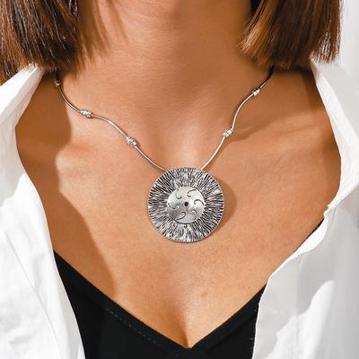Retro Creative Ethnic Style Multi Element Sunflower Pendant Geometric Collar Necklace Female